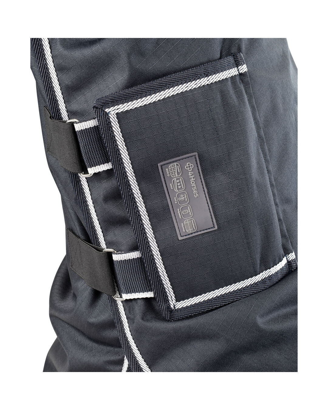 Dieses Halsteil wurde speziell entworfen, um deinem Pferd erweiterten Schutz gegen Witterungseinflüsse zu bieten. Aus robustem 600 Denier Polyester-Ripstop gefertigt, garantiert dieses Halsteil mit seiner Wassersäule von 3000 mm umfassende Wasserabweisung. Eine Füllung von 100 g Polyfill bietet dabei wohlige Wärme, ohne zu beschweren.