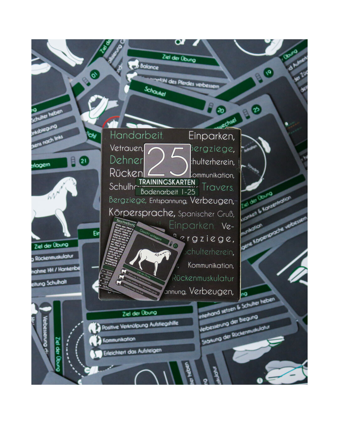 Die 25 Trainingskarten Bodenarbeit, bieten dir die Möglichkeit dein Pferd mit System am Boden zu arbeiten.