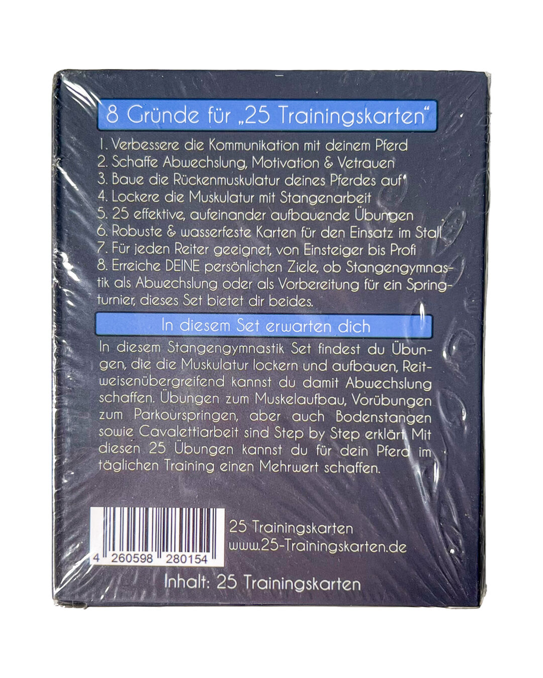 Mit den 25 Trainingskarten bringst du System in dein Training! Gestalte deinen optimalen Trainingsplan und erreiche deine Ziele für noch mehr Freude mit deinem Pferd. Diese wasserfesten Karten sind dein idealer Begleiter im Stall, um Übungen direkt vor Ort auszuführen. Sie funktionieren reitweisenunabhängig, sind professionell erarbeitet und sofort einsetzbar. Ideal für tägliche Reit- oder Bodenarbeit mit mehr Abwechslung, Motivation und Fortschritt.