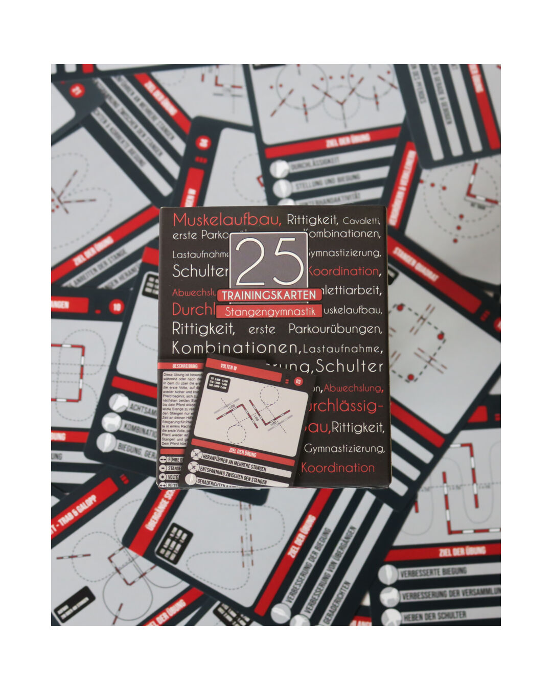 Diese Karten bieten dir eine Vielzahl von Übungen, die speziell für die Arbeit mit Stangen entwickelt wurden. Mit diesen Übungen kannst du die Muskulatur, Koordination und Hinterhandaktivität deines Pferdes auf ein neues Level bringen.