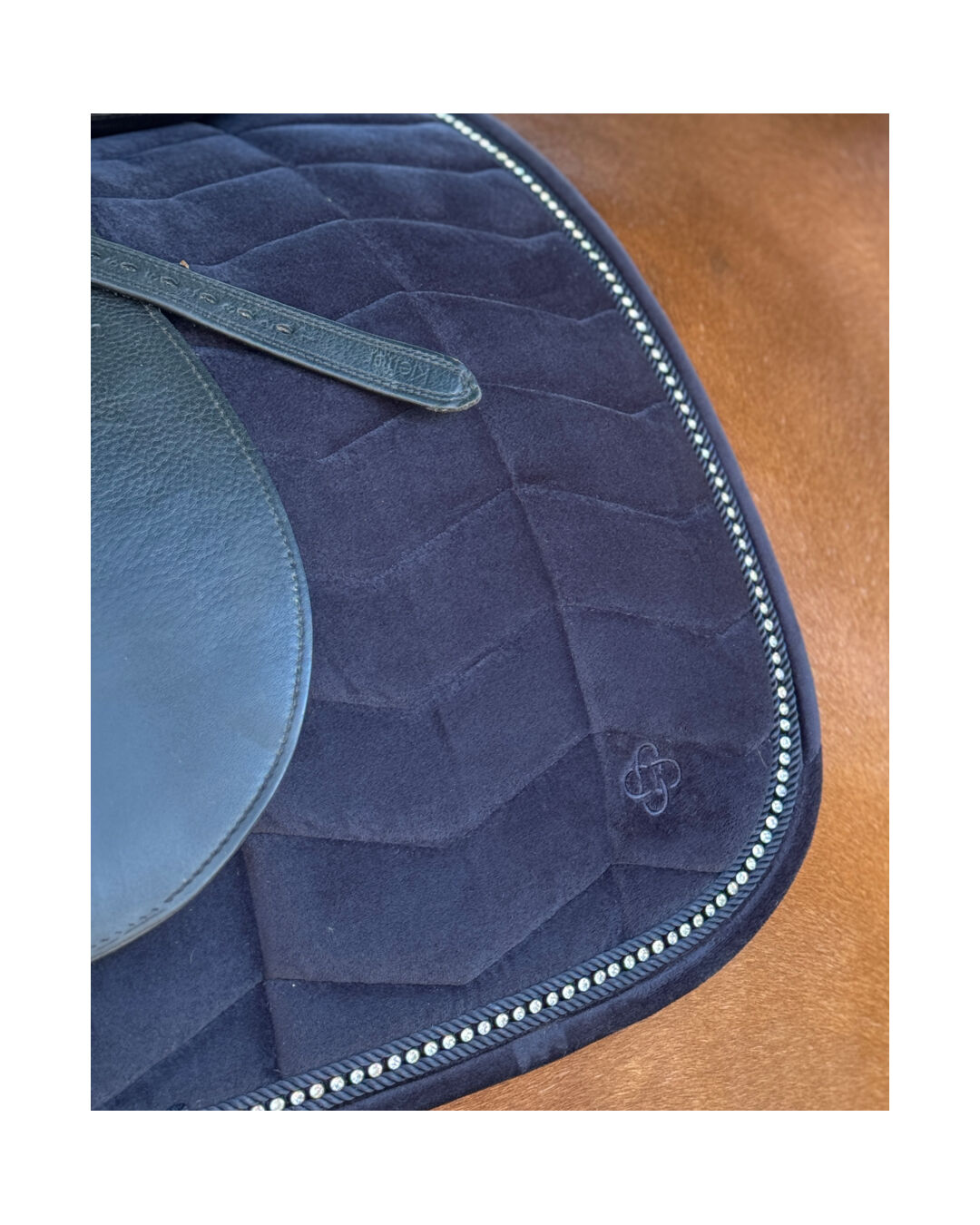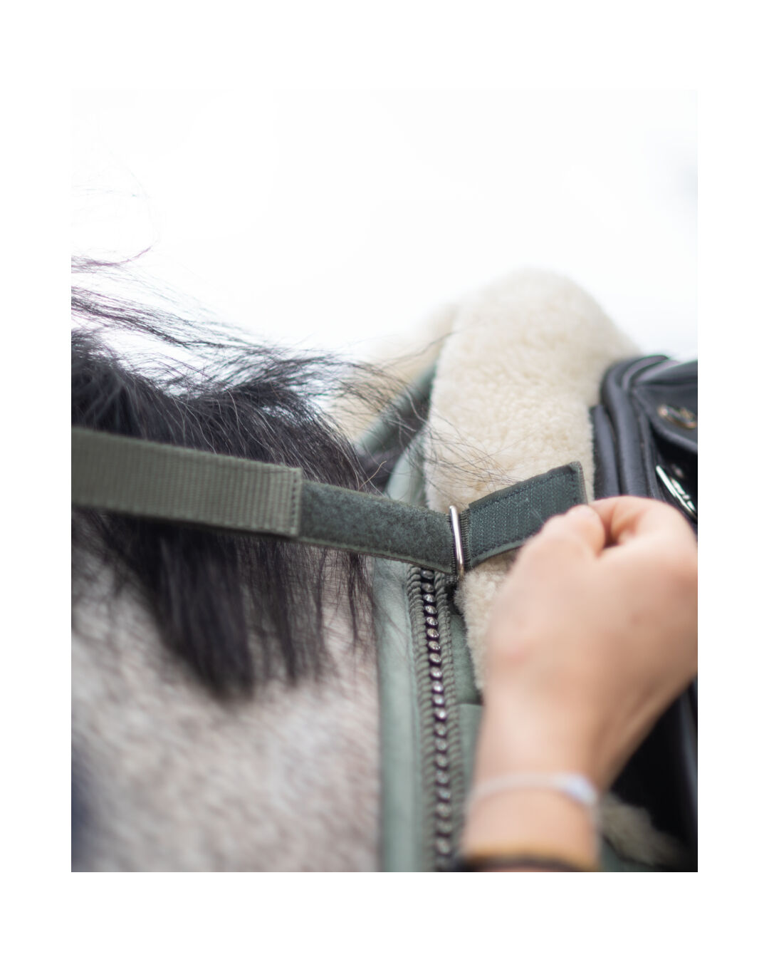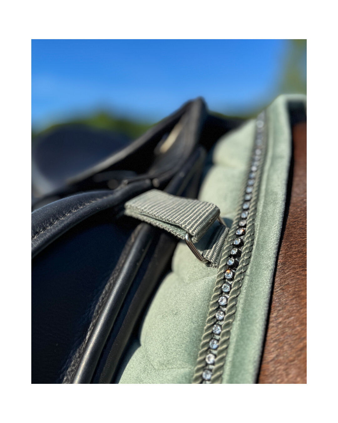 Durch die Gurt- und Strupfenschlaufen mit Klettverschluss bleibt die Schabracke sicher an ihrem Platz, während die aufwendigen Details in Design und Verarbeitung für eine langlebige und stilvolle Optik sorgen.