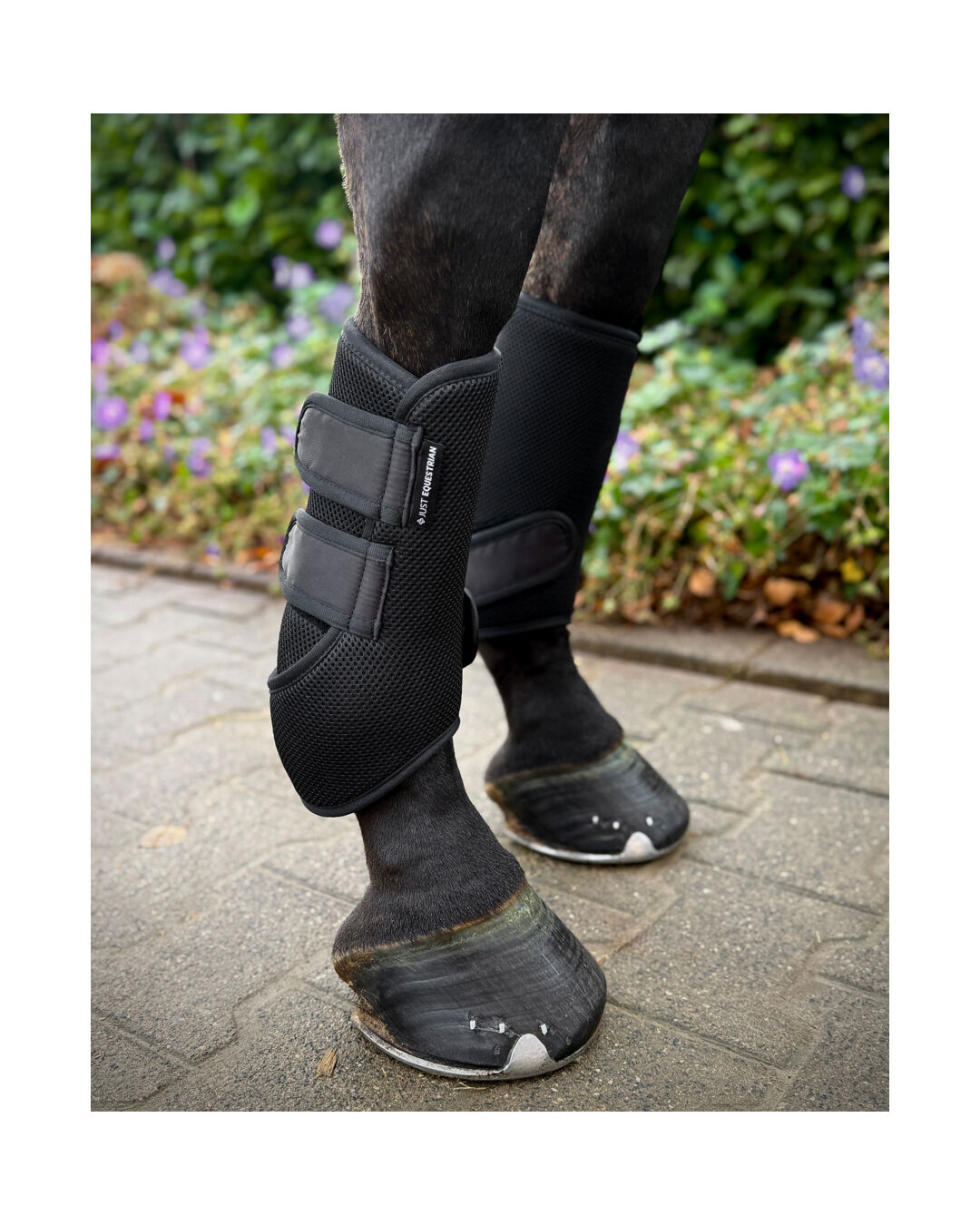 Die rundum weiche Polsterung bietet einen zuverlässigen Stoßschutz, ohne dabei aufzutragen. Empfindliche Sehnen- und Fesselbereiche sind bestens geschützt, selbst bei unebenen Böden. Das atmungsaktive Airmesh-Material macht die Gamaschen besonders luftdurchlässig – kein Hitzestau, kein Schwitzen, dafür ein durchgängig angenehmes Tragegefühl.