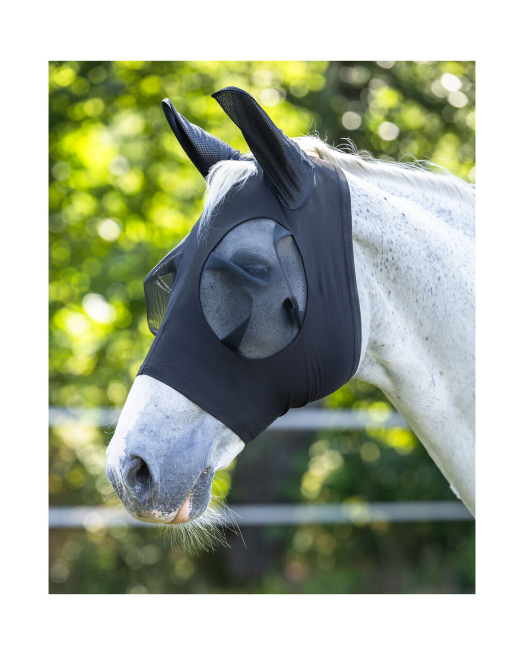 Das elastische Polyestergewebe ist angenehm leicht und passt sich optimal an die Kopfform deines Pferdes an, sodass die Maske sicher und komfortabel sitzt. Sie ist die ideale Lösung für den täglichen Schutz vor Insekten.