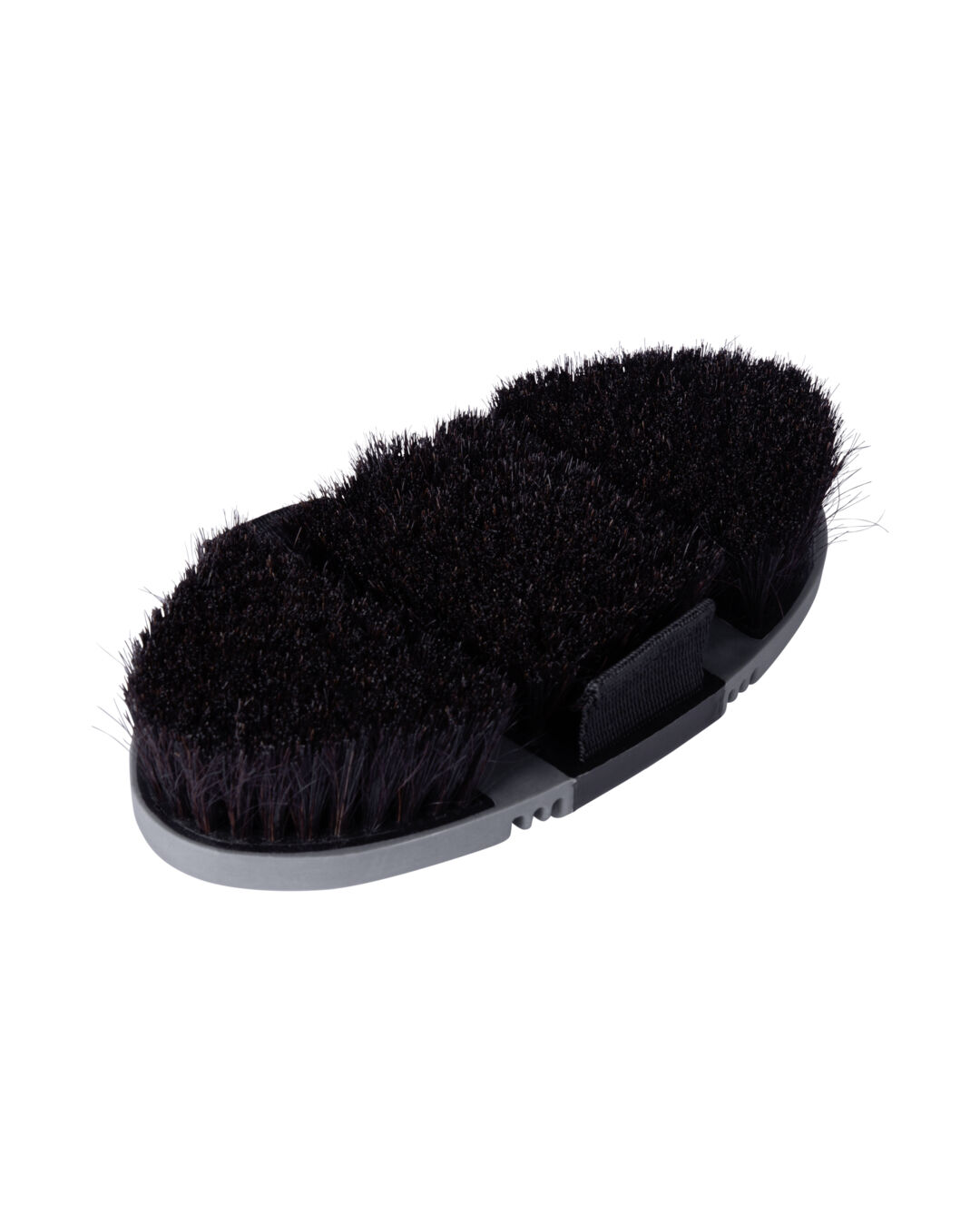 Die Kardätsche besteht aus flexiblen Borsten aus echtem Rosshaar, die effektiv lose Haare, Staub und Schmutzpartikel aus dem Fell entfernen, ohne die empfindliche Haut des Pferdes zu reizen. Durch die Flexibilität der Borsten passt sich die Kardätsche den Konturen des Pferdekörpers an, was ein angenehmes und stressfreies Pflegeerlebnis für das Tier gewährleistet. Das natürliche Rosshaar ist nicht nur besonders schonend, sondern trägt auch dazu bei, das Fell zu polieren und einen gesunden Glanz zu verleihen, indem es die natürlichen Öle im Fell verteilt.
