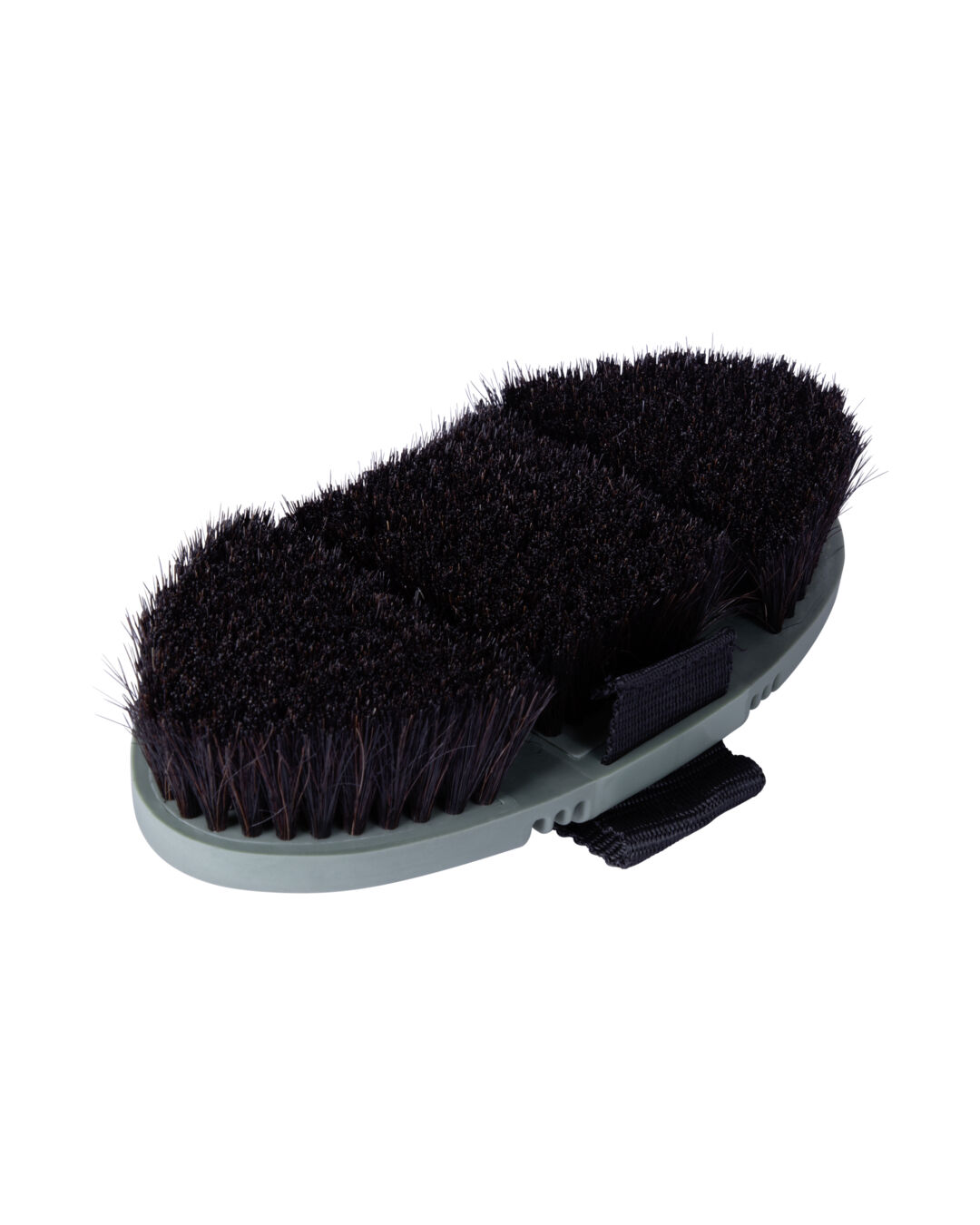 Die Kardätsche besteht aus flexiblen Borsten aus echtem Rosshaar, die effektiv lose Haare, Staub und Schmutzpartikel aus dem Fell entfernen, ohne die empfindliche Haut des Pferdes zu reizen. Durch die Flexibilität der Borsten passt sich die Kardätsche den Konturen des Pferdekörpers an, was ein angenehmes und stressfreies Pflegeerlebnis für das Tier gewährleistet. Das natürliche Rosshaar ist nicht nur besonders schonend, sondern trägt auch dazu bei, das Fell zu polieren und einen gesunden Glanz zu verleihen, indem es die natürlichen Öle im Fell verteilt.