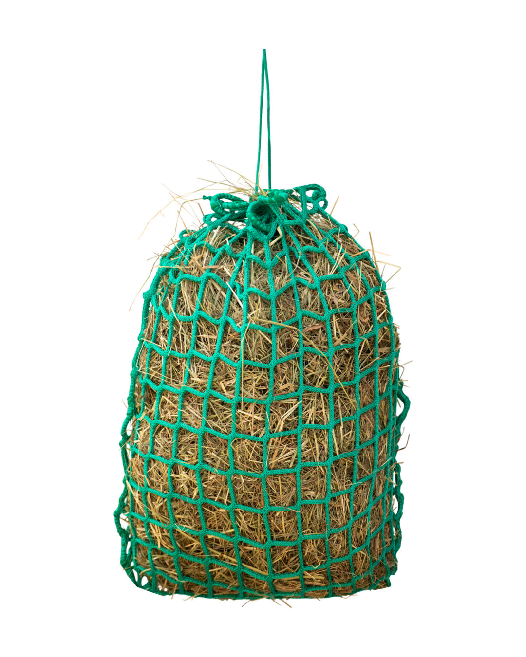 Einzigartig an diesem Heunetz ist seine knotenlose Konstruktion. Die spezielle Machart ermöglicht eine gleichmäßige Verteilung des Futters im Netz, ohne dass sich die Pferde an den Knoten stören oder verletzen könnten. Die Maschen sind so gestaltet, dass sie eine optimale Futterkontrolle bieten, indem sie die Fressgeschwindigkeit reduzieren und eine langsamere Futteraufnahme fördern. Die knotenlose Verarbeitung ist besonders Zahn- und Zahnfleischschonend.