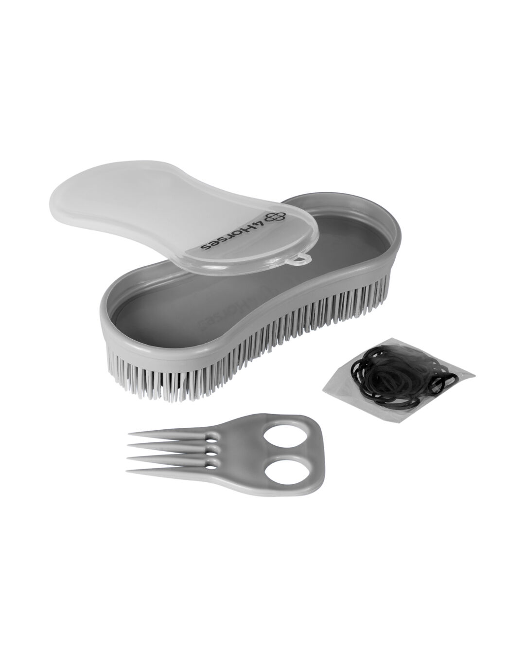 Die 4Horses Multi-Bürste Salamanca mit Mähnengummis und Mini-Mähnenkamm ist das ideale Pflegeset für dein Pferd.