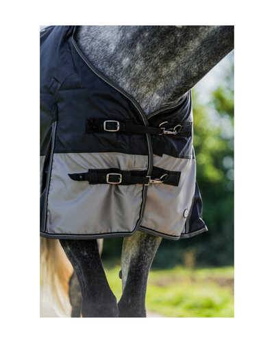 Das Widerrist-Teil ist zusätzlich mit weichem Fleece ausgekleidet, um Scheuerstellen zu verhindern, während die Gehfalte und der Schweiflatz für mehr Bewegungsfreiheit und zusätzlichen Schutz sorgen. Optisch überzeugt die Kopenhagen-Decke im eleganten zweifarbigen Look mit silbern schimmernden Nähten. Ein weiteres praktisches Detail: Mit Klettverschlüssen kannst du an der Vorderseite der Decke optional ein Halsteil anbringen.