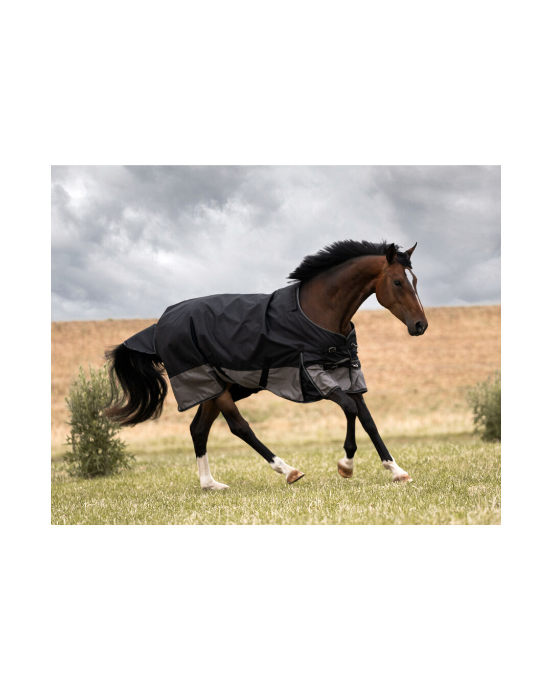 Mit ihrem robusten und funktionalen Design bietet sie alles, was du für einen zuverlässigen Schutz deines Pferdes benötigst. Die stark wasserabweisende, winddichte und atmungsaktive Decke besteht aus strapazierfähigem 1200 D Polyester und sorgt dafür, dass dein Pferd trocken und komfortabel bleibt.