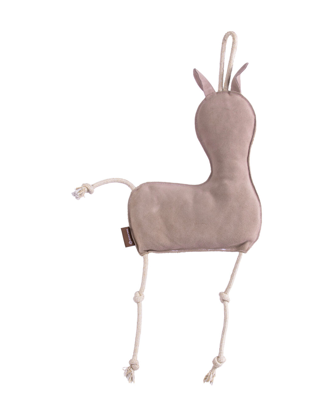 Du hast die Wahl aus drei Pferdefreunden: das Pferd Ronja, den Affen Paul und das Lama Fred. Hergestellt sind alle drei aus hochwertigen natürlichen Materialien. Das Obermaterial ist aus robustem und verstärktem Leder, das Innenfutter besteht aus Kokosfasern. Die durchlaufenden Seile dienen zur Verstärkung und ergeben ein robustes und langlebiges Spielzeug.
