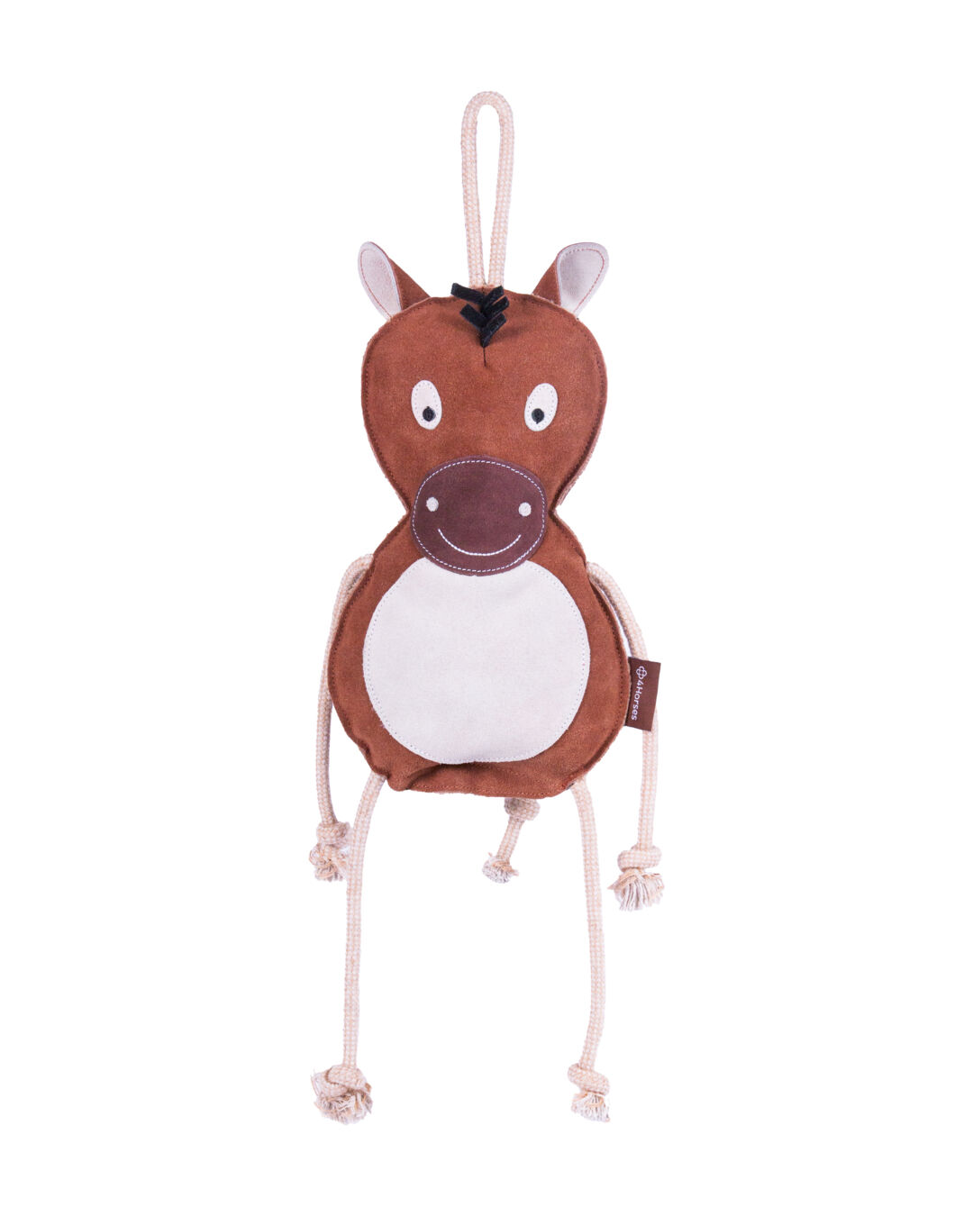 Du hast die Wahl aus drei Pferdefreunden: das Pferd Ronja, den Affen Paul und das Lama Fred. Hergestellt sind alle drei aus hochwertigen natürlichen Materialien. Das Obermaterial ist aus robustem und verstärktem Leder, das Innenfutter besteht aus Kokosfasern. Die durchlaufenden Seile dienen zur Verstärkung und ergeben ein robustes und langlebiges Spielzeug.