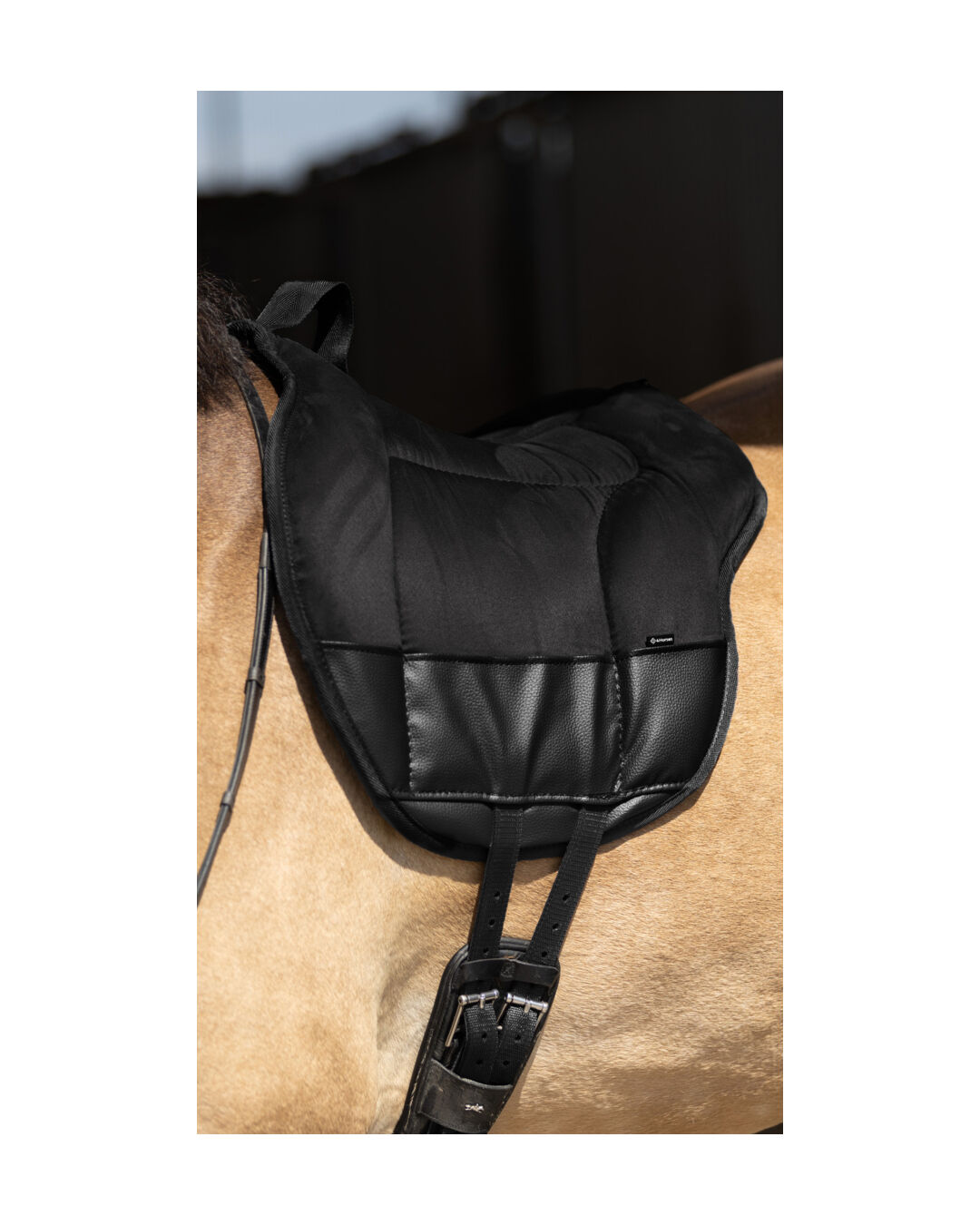 Das Reitpad ist besonders gepolstert und das Obermaterial ist ebenfalls rutschfest, sodass dir das Reiten ohne Sattel einfacher fällt. Die Polster rahmen das Bein für ein sicheres Reitgefühl ein, ohne dabei deine Bewegungsfreiheit einzuschränken.