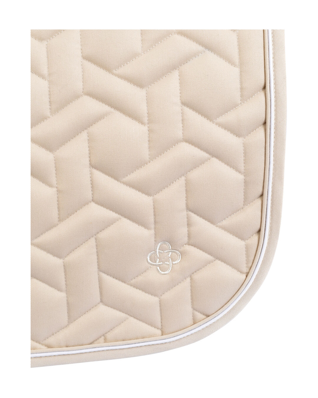 Die 10 mm starke Schaumpolsterung und die 300 g/m² Polyfill-Füllung sorgen für optimale Druckverteilung und Stoßdämpfung. Die wellenförmige Steppung verleiht der Schabracke nicht nur eine ansprechende Optik, sondern auch Stabilität und Formbeständigkeit. Die farbliche Einfassung rundherum sowie das 4Horses Logo auf der Oberseite des Sattelkanals verleihen der Schabracke einen sportlichen Look.