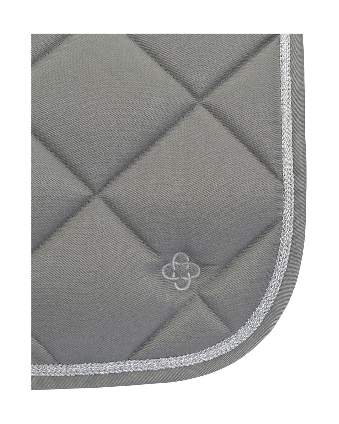 • Elegante Einfassung mit silberner Kordel und Ton-in-Ton Logo-Stickerei