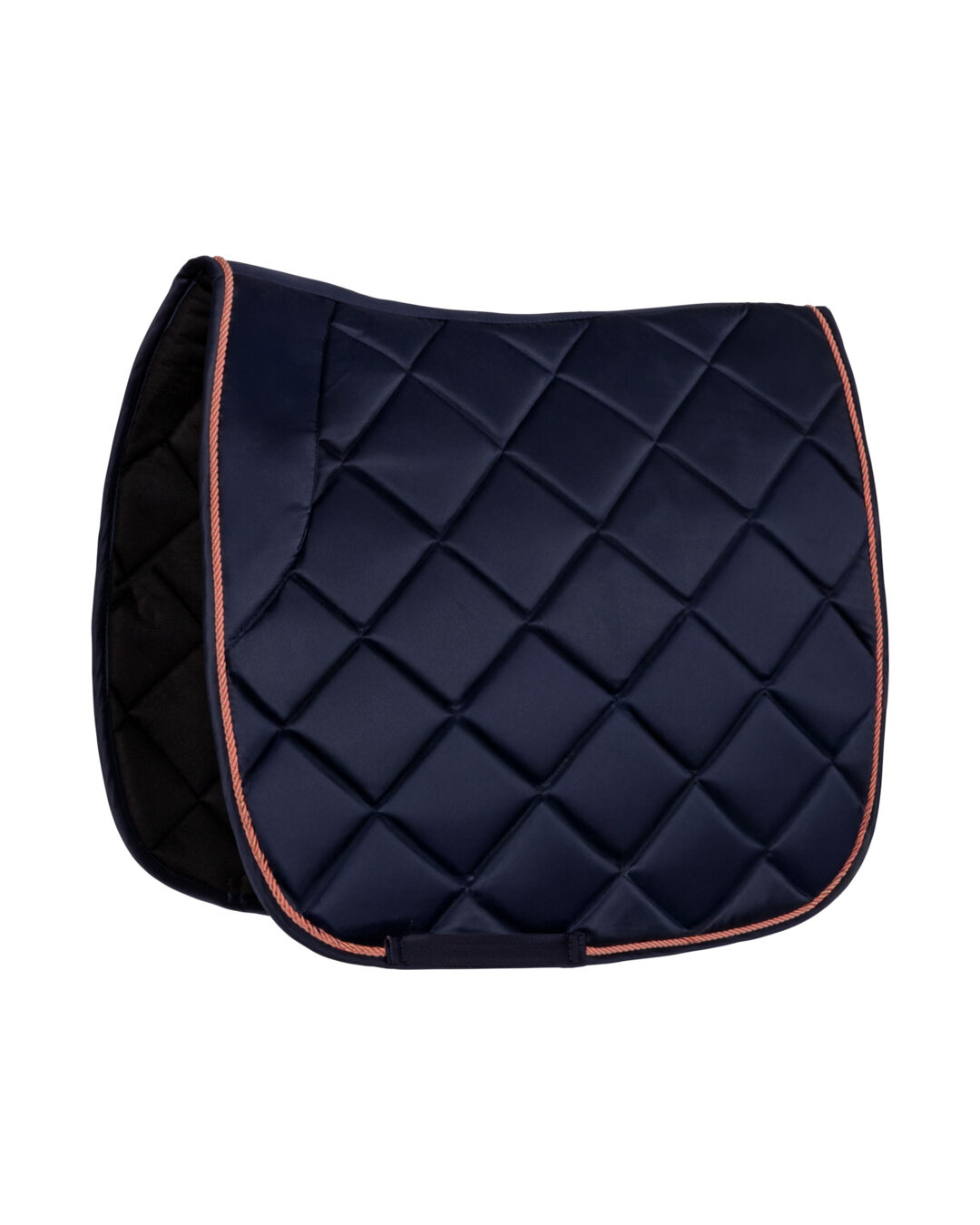 Die Schabracke Girona von 4Horses überzeugt mit ihrer anatomischen Form und dem eleganten, großen Rautenmuster.