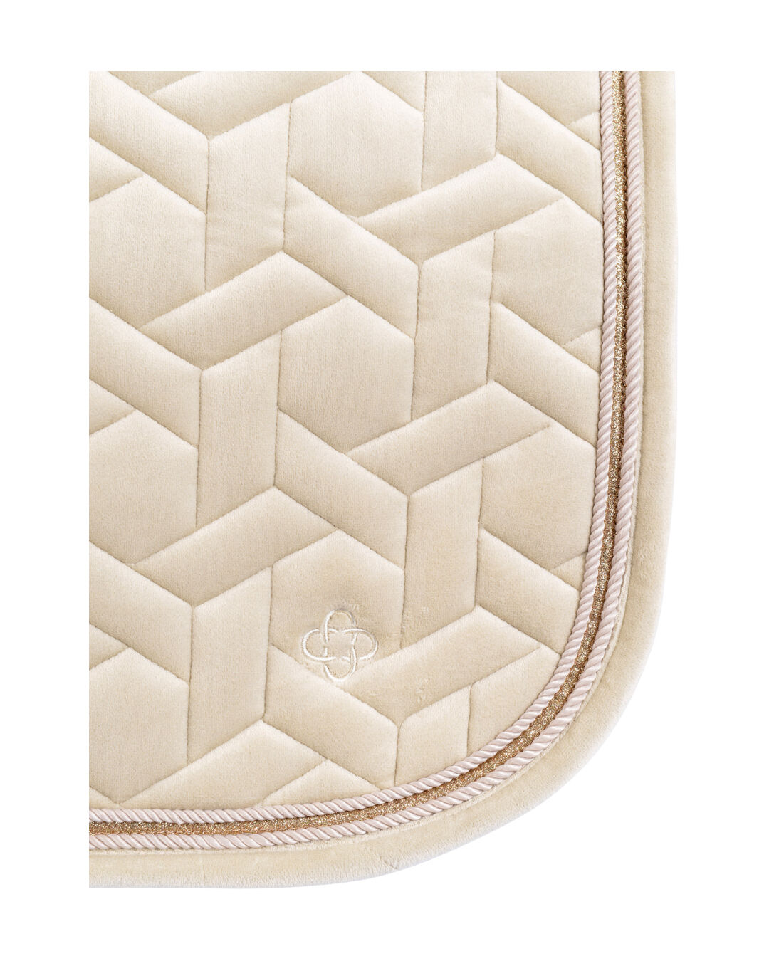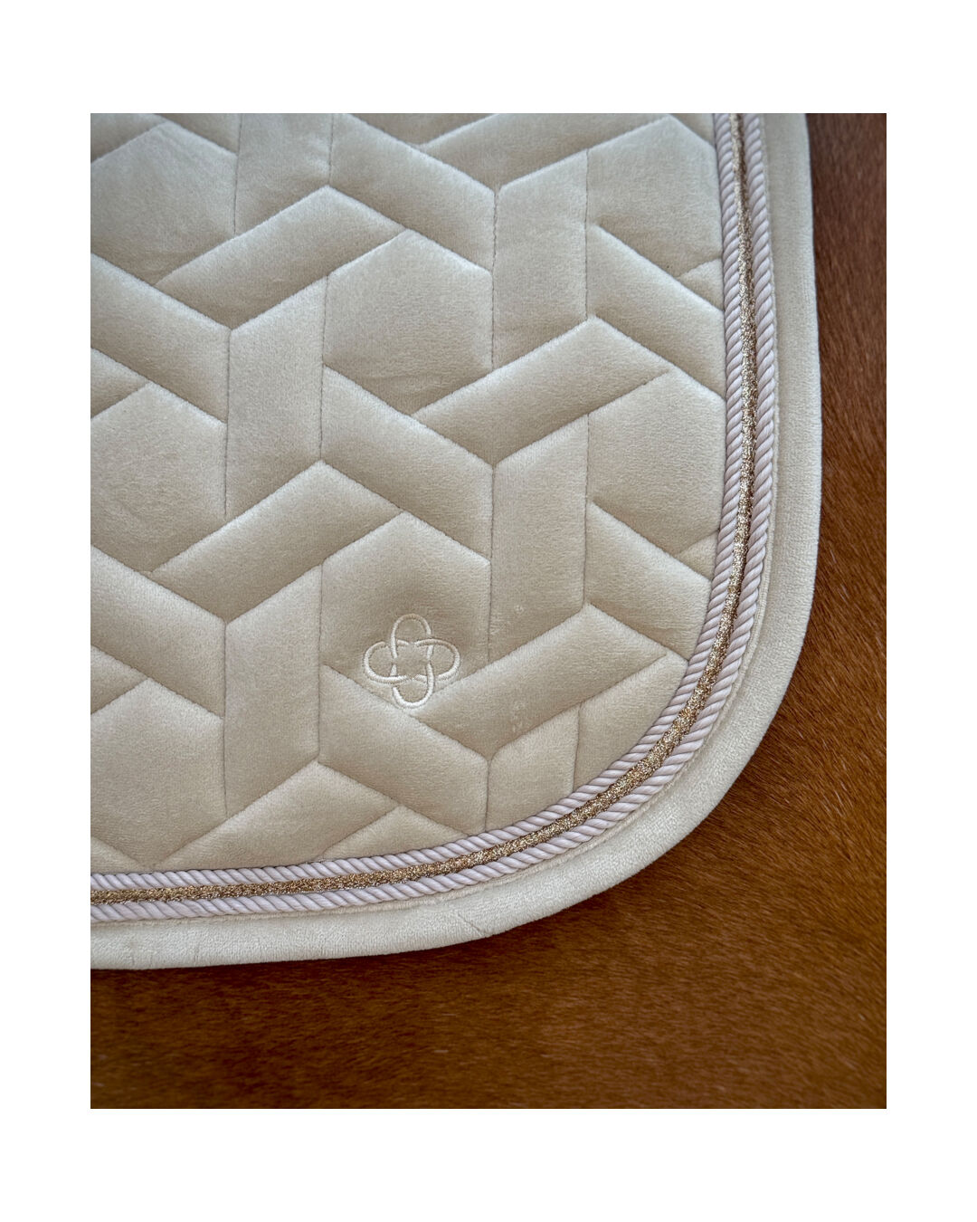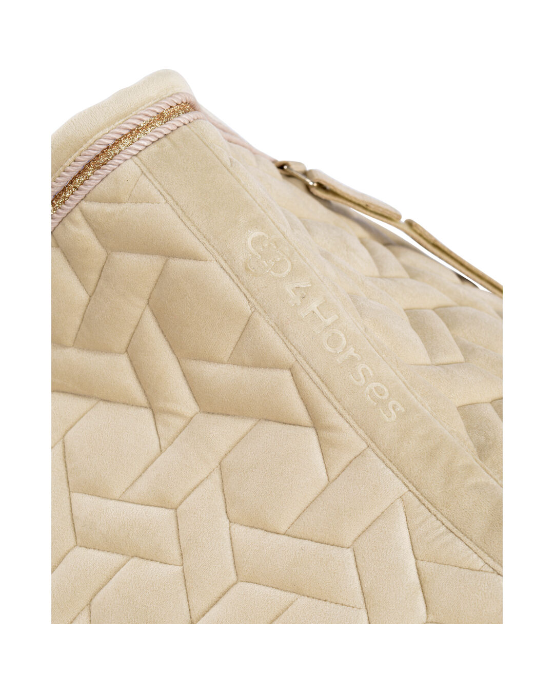 An kälteren Tagen wirken die Faserstrukturen isolierend, sodass dein Pferd gut geschützt ist. Die geometrische Steppung und die doppelte Kordel mit Glitter-Tape unterstreichen das hochwertige Design. Mit der 10 mm Schaumstoffpolsterung und 300 g/m² Polyfill bietet die Schabracke eine ausgezeichnete Stoßdämpfung, was sie ideal für den täglichen Gebrauch und das Turnier macht.