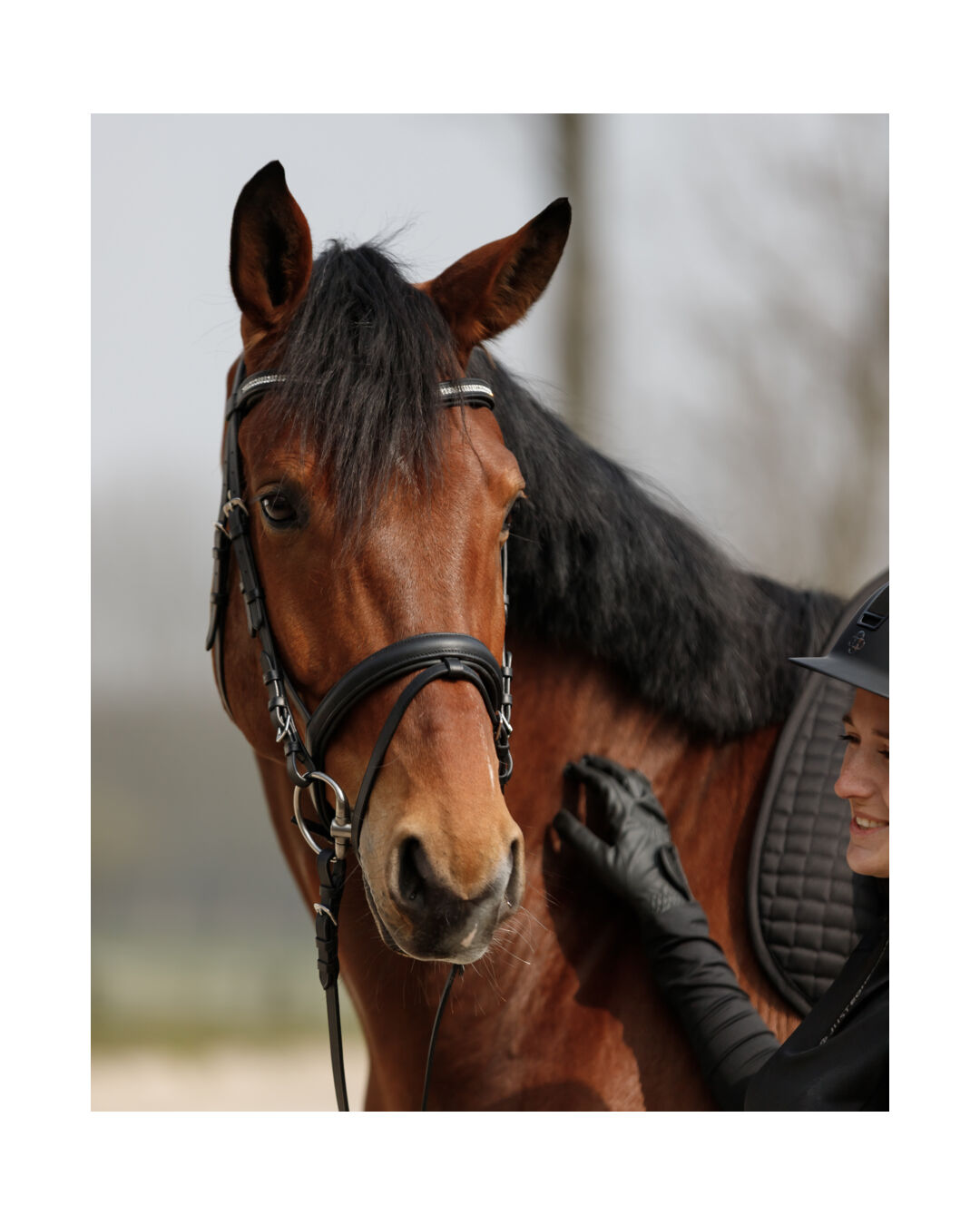 Die mitgelieferten Web-Zügel, gefertigt aus einer Kombination von Leder und gesponnenem Polyester, bieten dir eine griffige Handhabung für eine präzise Zügelführung.