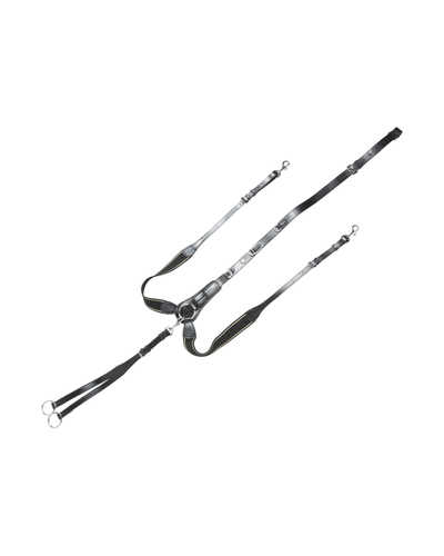 Für optimalen Tragekomfort ist das Bruststück des Vorderzeugs unterlegt. Die Martingalgabel kann über den Karabinerhaken einfach ausgeschnallt werden. Zusätzliche Ringe am Beinriemen ermöglichen das Anbringen von Hilfszügeln, um das Training noch effektiver zu gestalten.