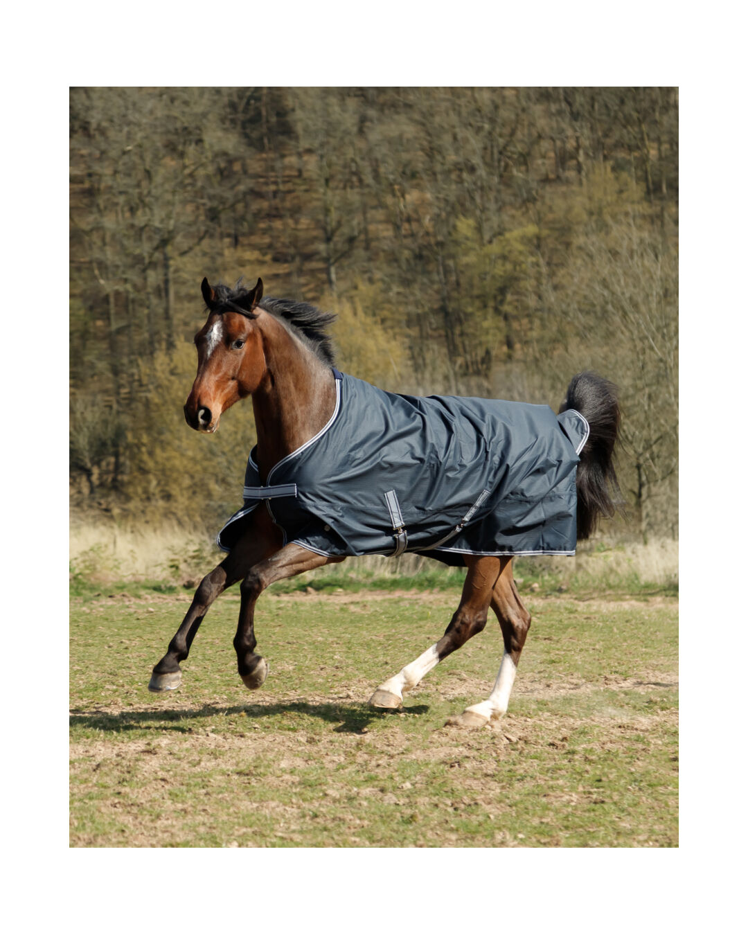 Dank der 200 g Füllung bietet sie eine solide Wärmewirkung für kühle bis mäßig kalte Tage. Die Decke ist winddicht und atmungsaktiv – so bleibt dein Pferd warm, ohne ins Schwitzen zu kommen. Außen sorgt strapazierfähiges 600 Denier Polyester für Robustheit und Langlebigkeit im täglichen Einsatz.