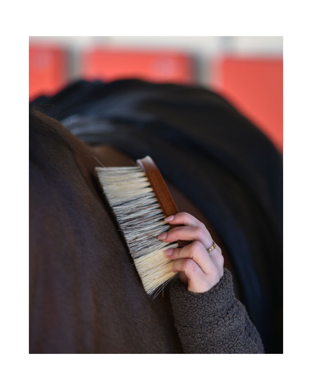 Der Bürstenkörper, gefertigt aus robustem Thermobuchenholz, verleiht dieser Bürste eine außergewöhnliche Langlebigkeit und Widerstandsfähigkeit. Ihre einzigartige Gestaltung vereint gelbe Naturfasern Fibre und Union-Fibre in einem ansprechenden zweifarbigen Muster. Damit garantiert die Bürste nicht nur eine effiziente Pflege für dein Pferd, sondern ist auch ein Blickfang in jeder Pflegeausrüstung – setze auf Qualität und Ästhetik mit der 4Horses Wurzelbürste Majesty Naturhaar.