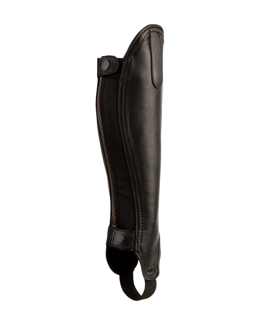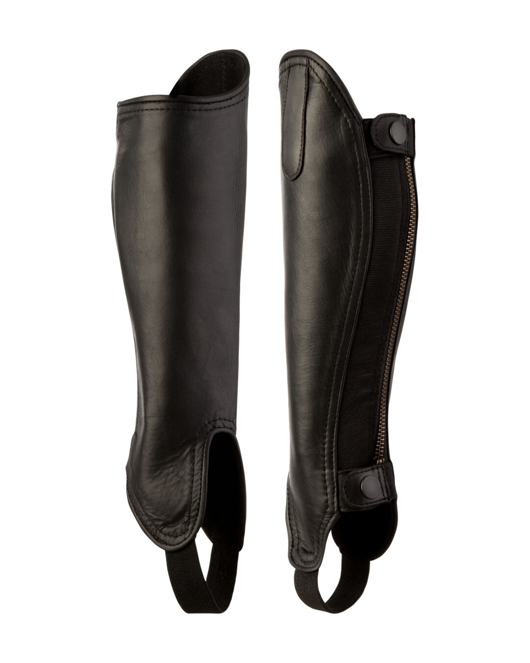 Diese Chaps bieten mit ihrem elastischen, verstärkten Fußsteg und dem Elastikeinsatz eine hervorragende Passform. Ein Keileinsatz vorne deckt Schnürstiefeletten ab und rundet das Design funktional ab.