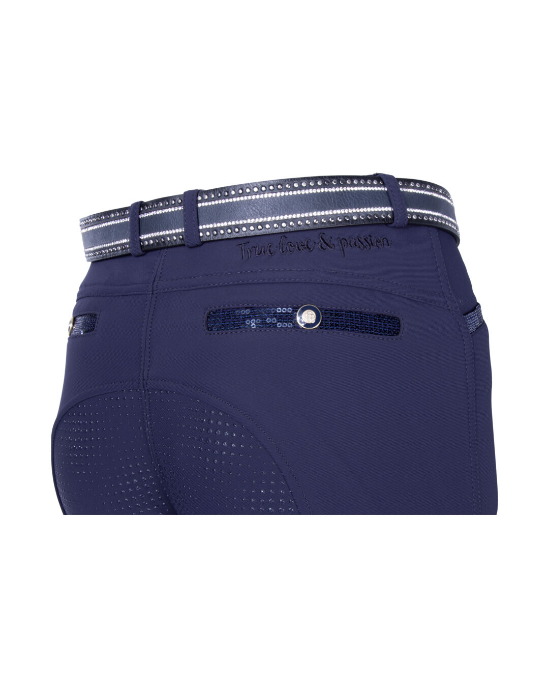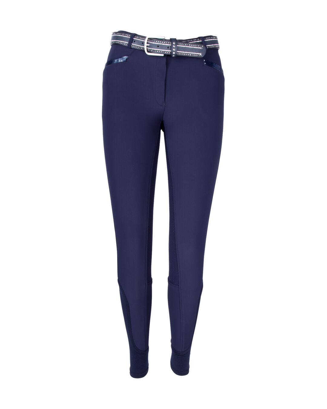 Wir stellen euch die bequeme Damen-Reithose London Thermo von 4Riders mit Full Grip vor: Die Reithose eignet sich durch ihr dickeres und wärmeisolierendes Material ideal für den Einsatz in der kälteren Jahreszeit. Der flexible Beinabschluss bietet dir dabei höchsten Tragekomfort. Modische Highlights wie die tollen Pailetten-Applikationen an den Zier- und Gesäßtaschen machen diese Reithose zum Hingucker.