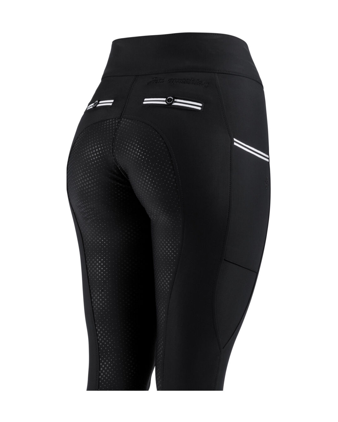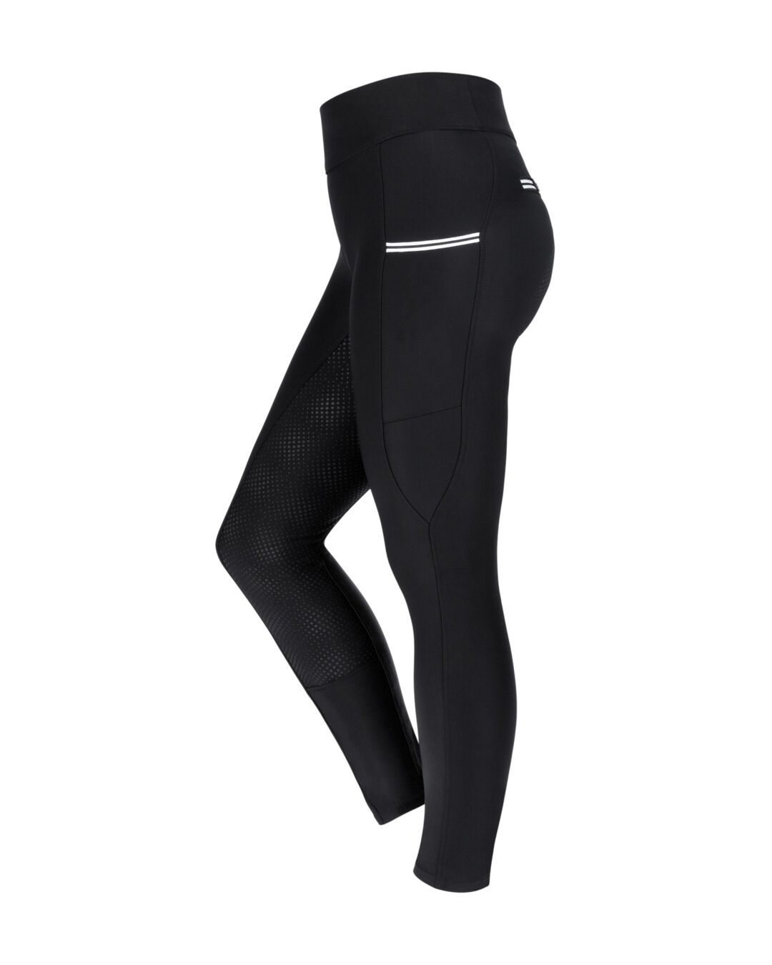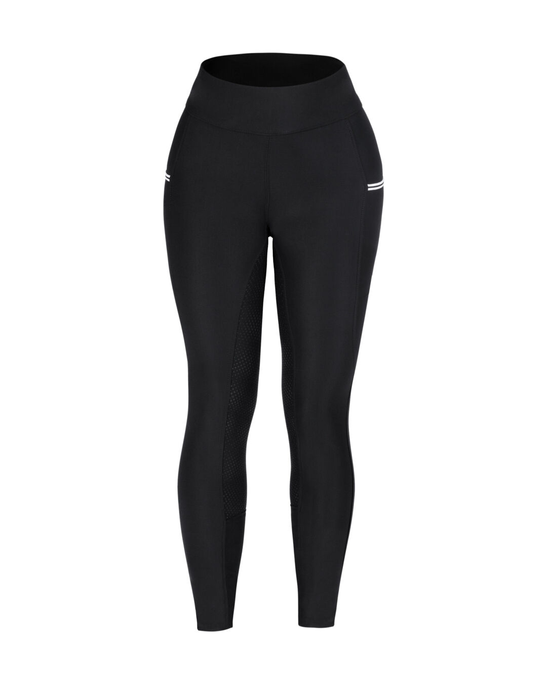 Das leichte und hochelastische Material sorgt für eine perfekte Passform und Bewegungsfreiheit. Der praktische Vollgrip-Besatz gewährleistet einen hervorragenden Halt im Sattel, sodass du dich voll und ganz auf dein Reiten konzentrieren kannst. Optisch überzeugt die Reitleggings mit kontrastfarbenen Details, die deinem Reitoutfit das gewisse Etwas verleihen.
