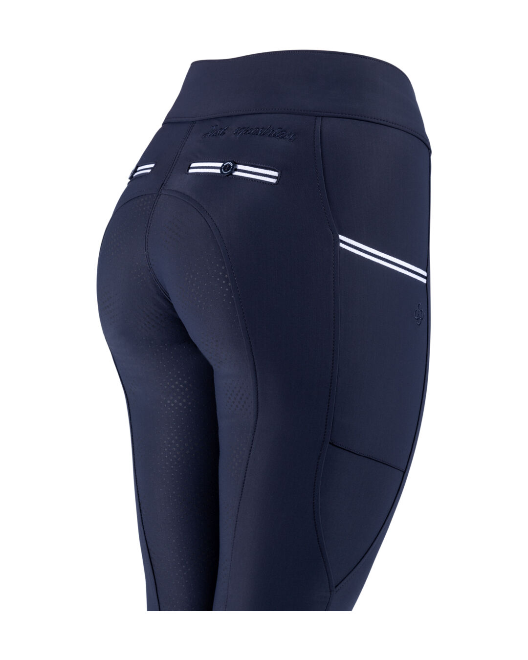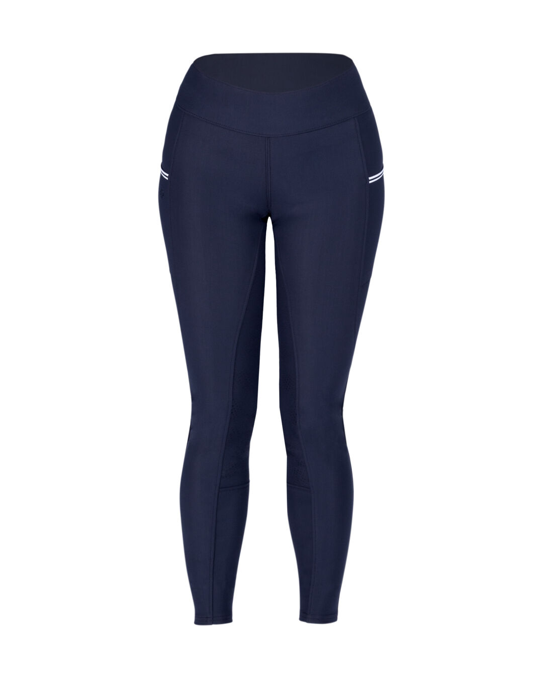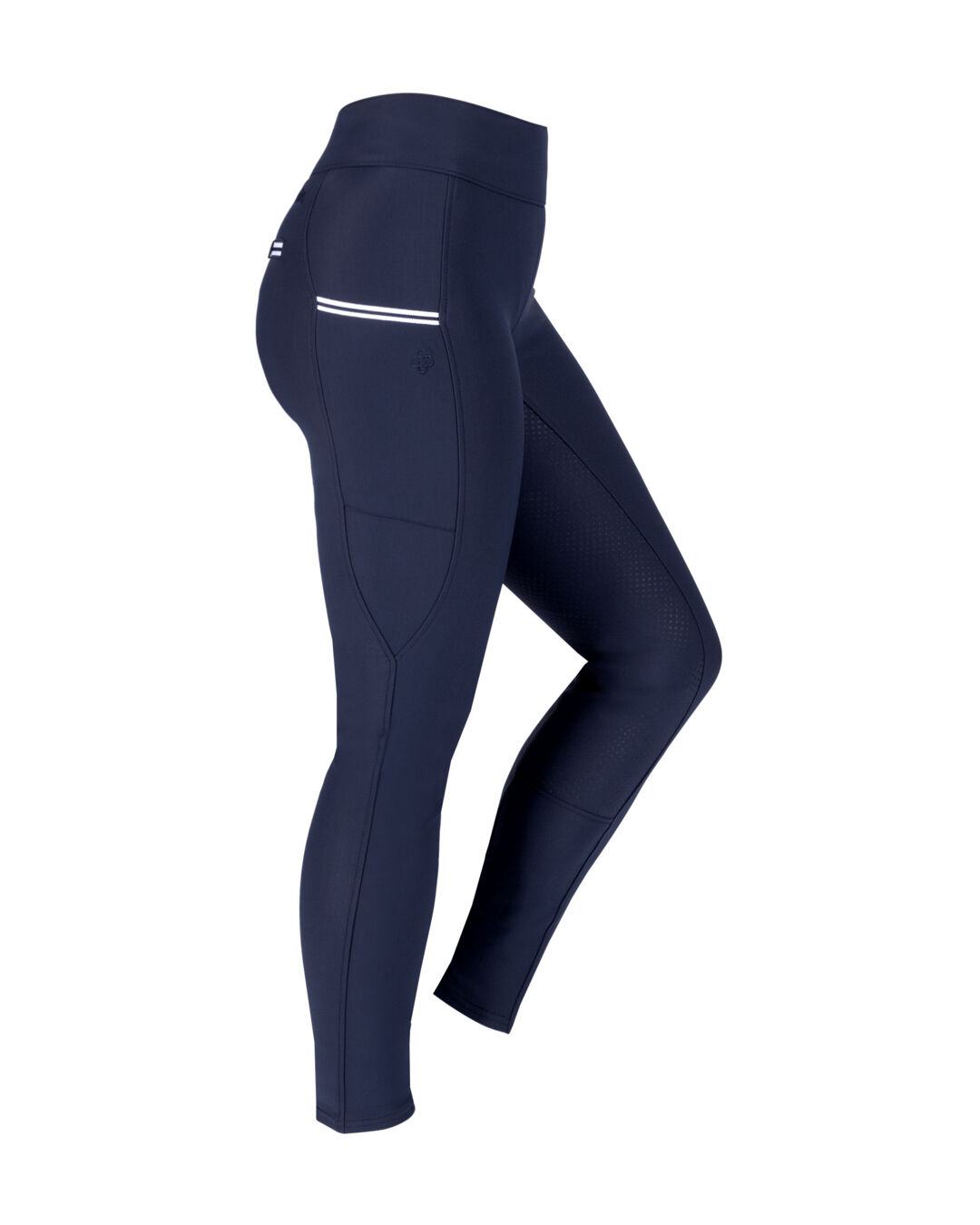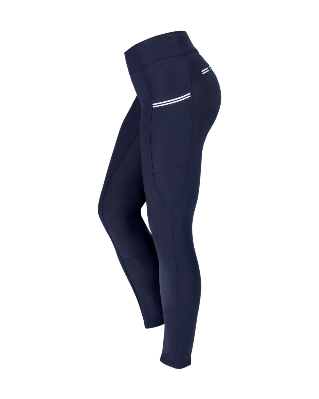 Das leichte und hochelastische Material sorgt für eine perfekte Passform und Bewegungsfreiheit. Der praktische Vollgrip-Besatz gewährleistet einen hervorragenden Halt im Sattel, sodass du dich voll und ganz auf dein Reiten konzentrieren kannst. Optisch überzeugt die Reitleggings mit kontrastfarbenen Details, die deinem Reitoutfit das gewisse Etwas verleihen.