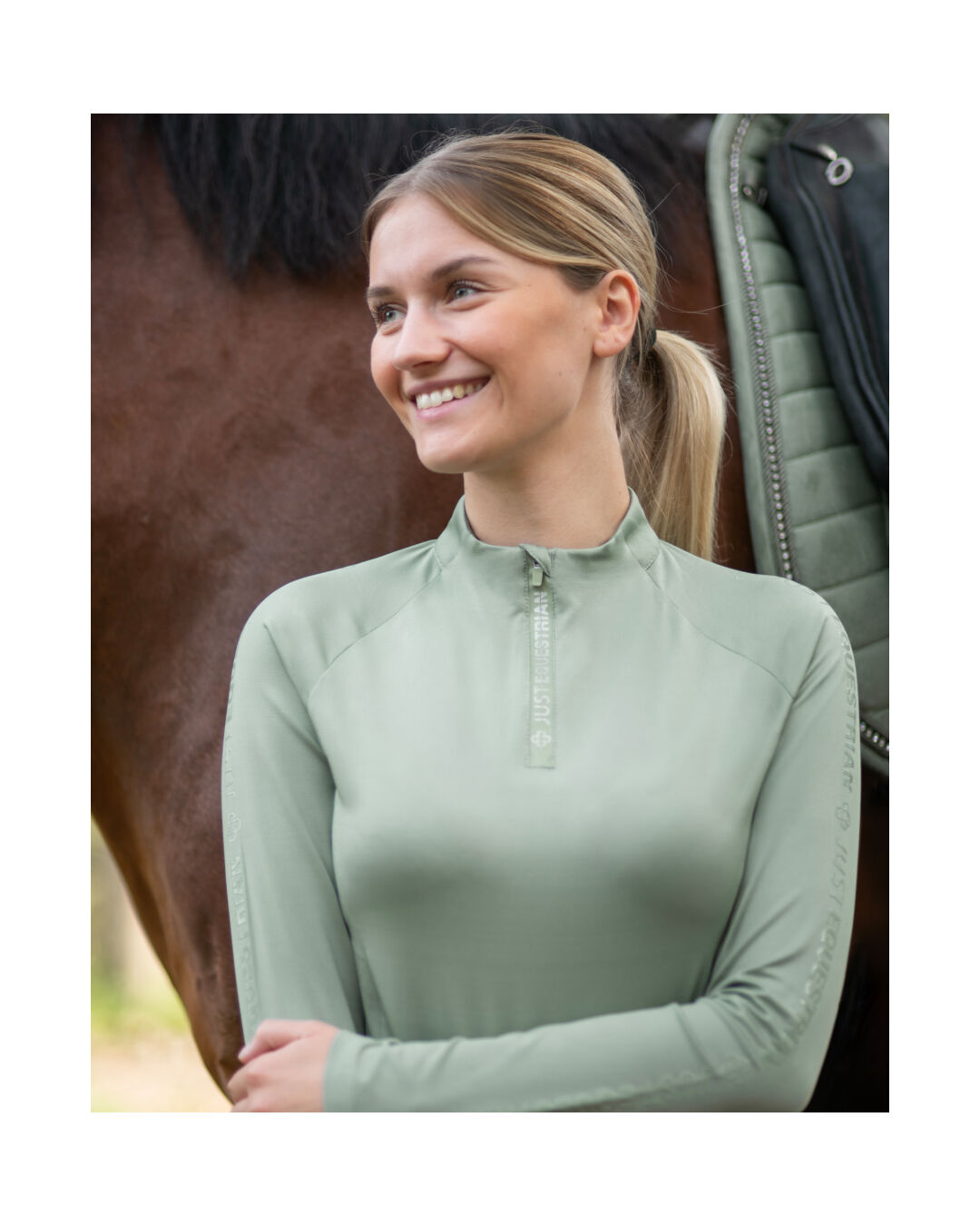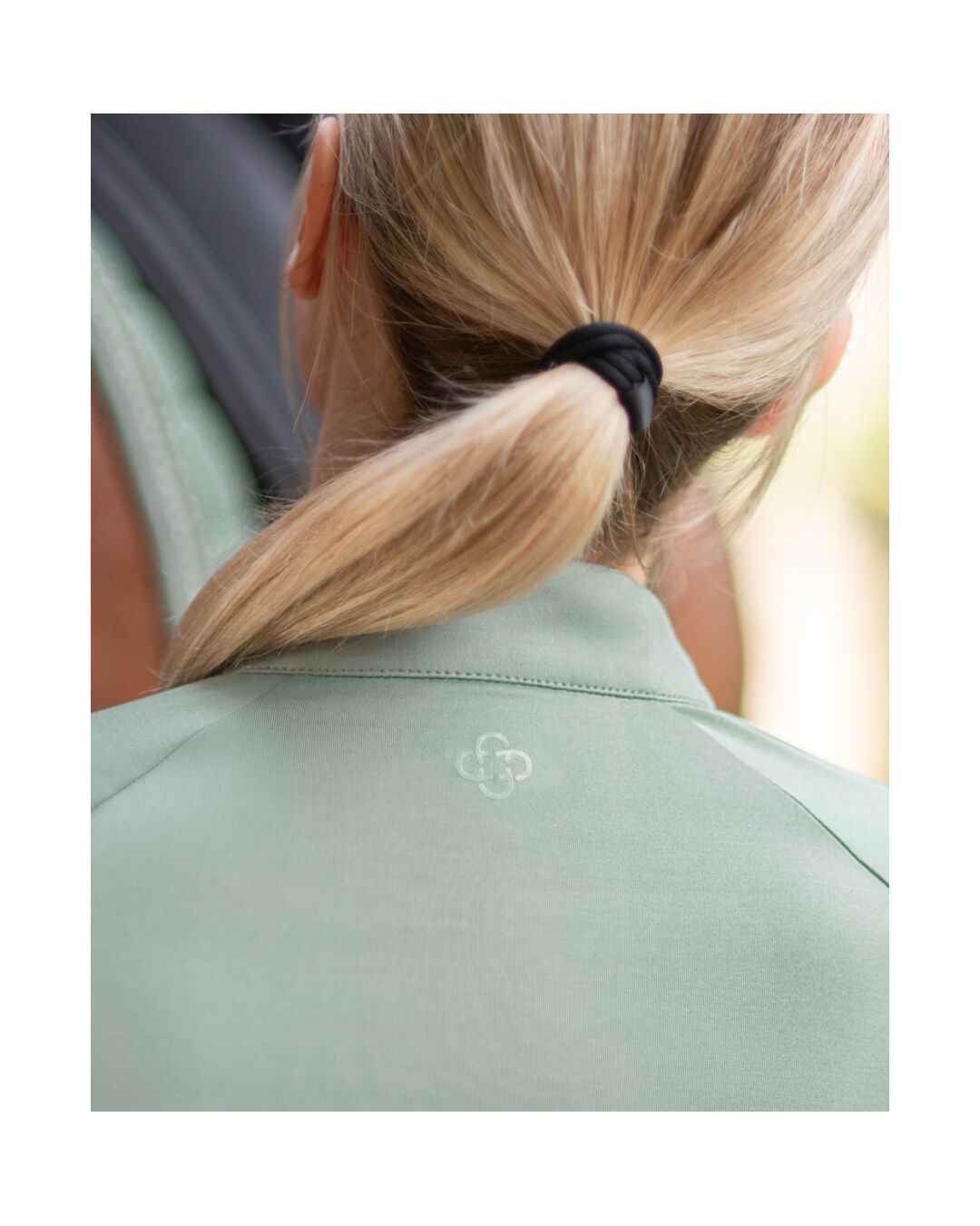 Der körpernahe Schnitt sitzt wie angegossen – ohne dich einzuengen – und sorgt dafür, dass du volle Bewegungsfreiheit hast, egal ob beim Training im Sattel oder bei der Stallarbeit. Das elastische Material legt sich angenehm weich an deine Haut und macht jede Bewegung mit, ganz ohne zu verrutschen.