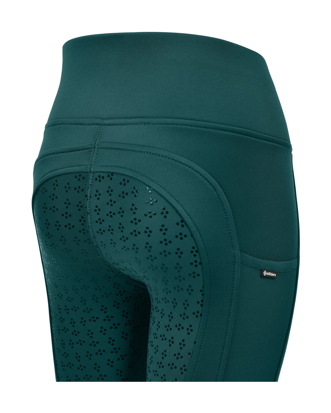 Die Reitleggings hat einen hohen Bund sowie eine seitliche Tasche zum Verstauen von Handy oder Leckerchen.