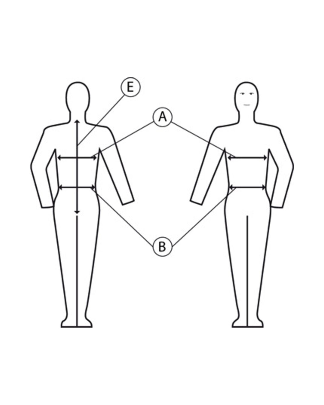 | Größe | Körpergröße (cm) | A – Brustumfang (cm) | B – Taillenumfang (cm) | E – Rückenlänge (cm) |