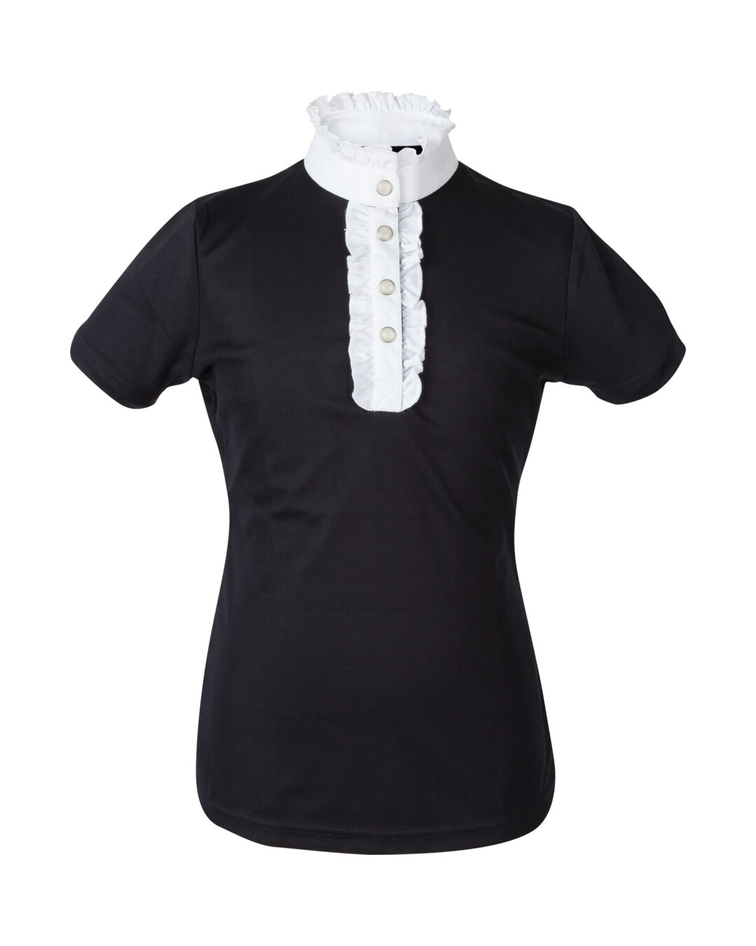 Modernes Turniershirt Fashion von 4RIDERS mit Druckknopfleiste vorne. Der Kragen und die Knopfleiste sind farblich abgesetzt. Angenehm leichtes und atmungsaktives Material garantiert höchsten Tragekomfort.