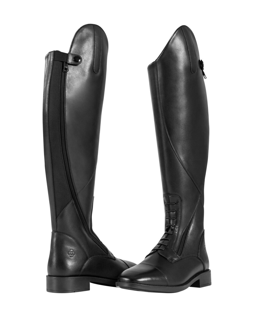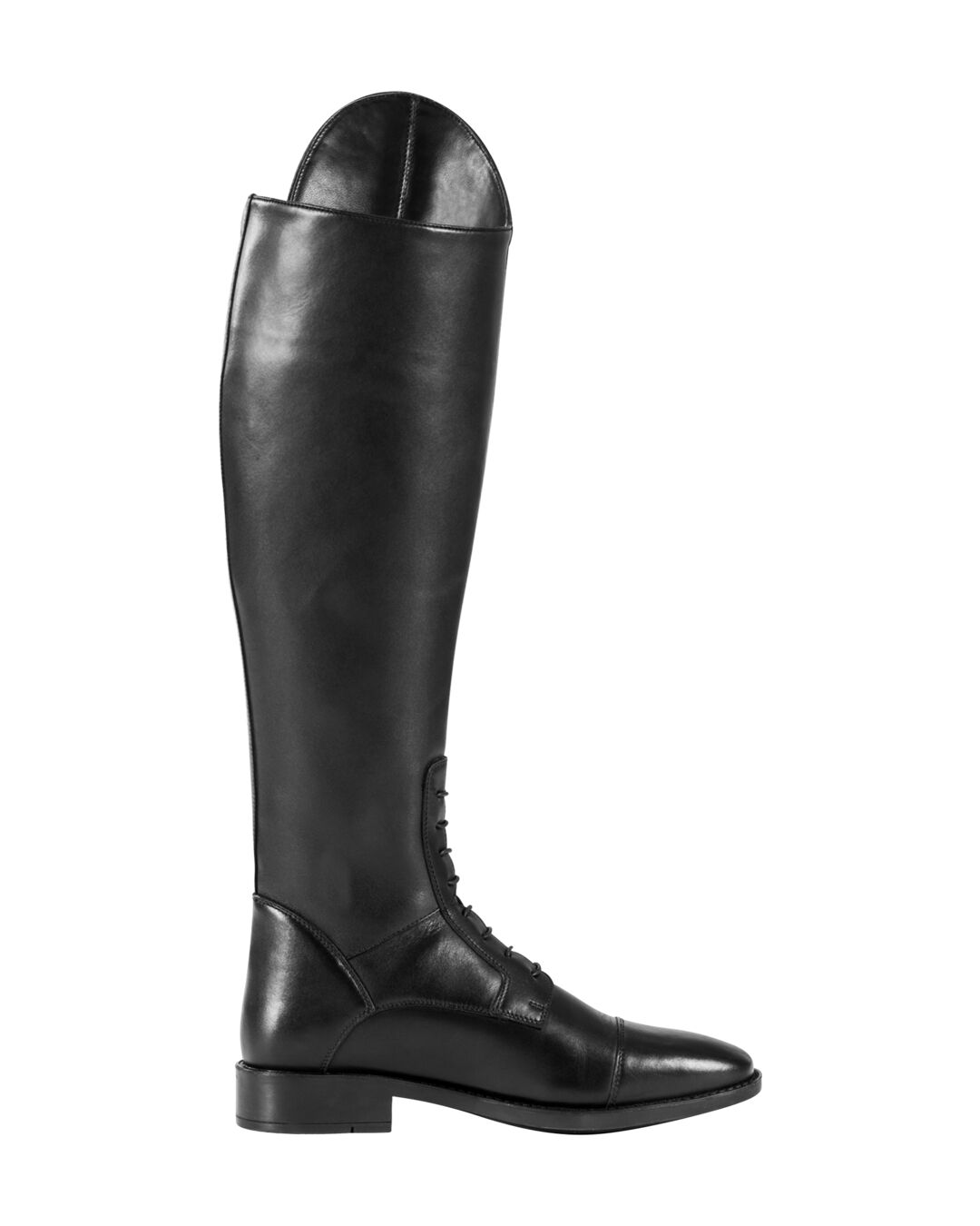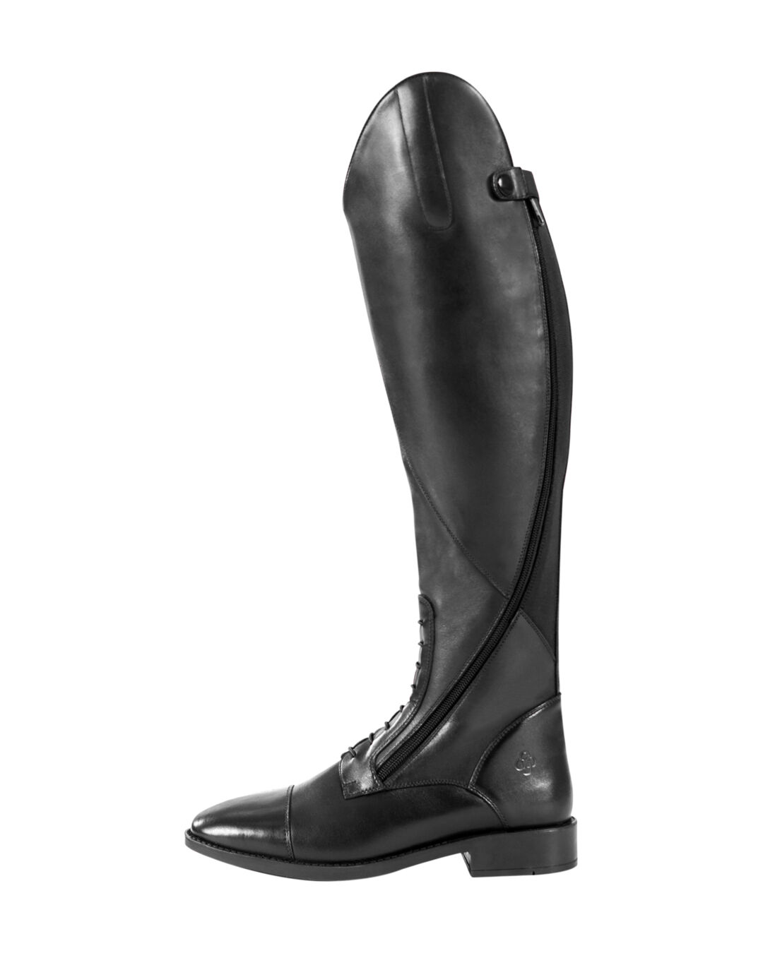 Das weiche Leder dieser Stiefel schmiegt sich sanft an das Bein und sorgt für einen hohen Tragekomfort, der auch bei längeren Reitausflügen nicht nachlässt. Ein besonderes Highlight ist der seitlich durchgehende Reißverschluss, der nicht nur das An- und Ausziehen erleichtert, sondern auch einen modischen Akzent setzt. Die elastische Schnürung vorne bietet zusätzliche Flexibilität und unterstützt eine optimale Passform.