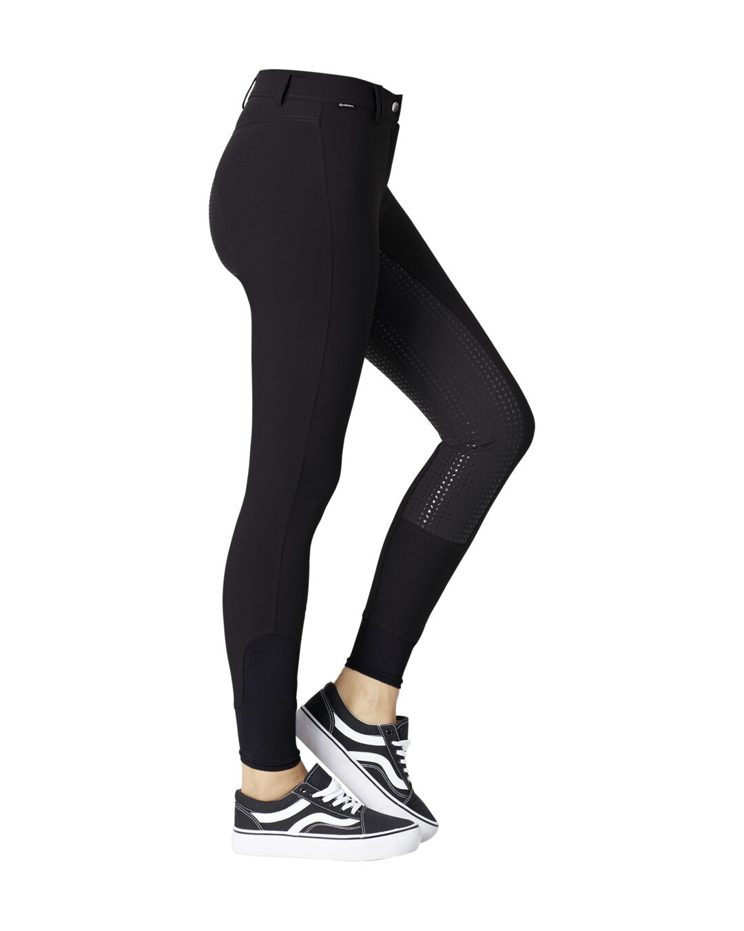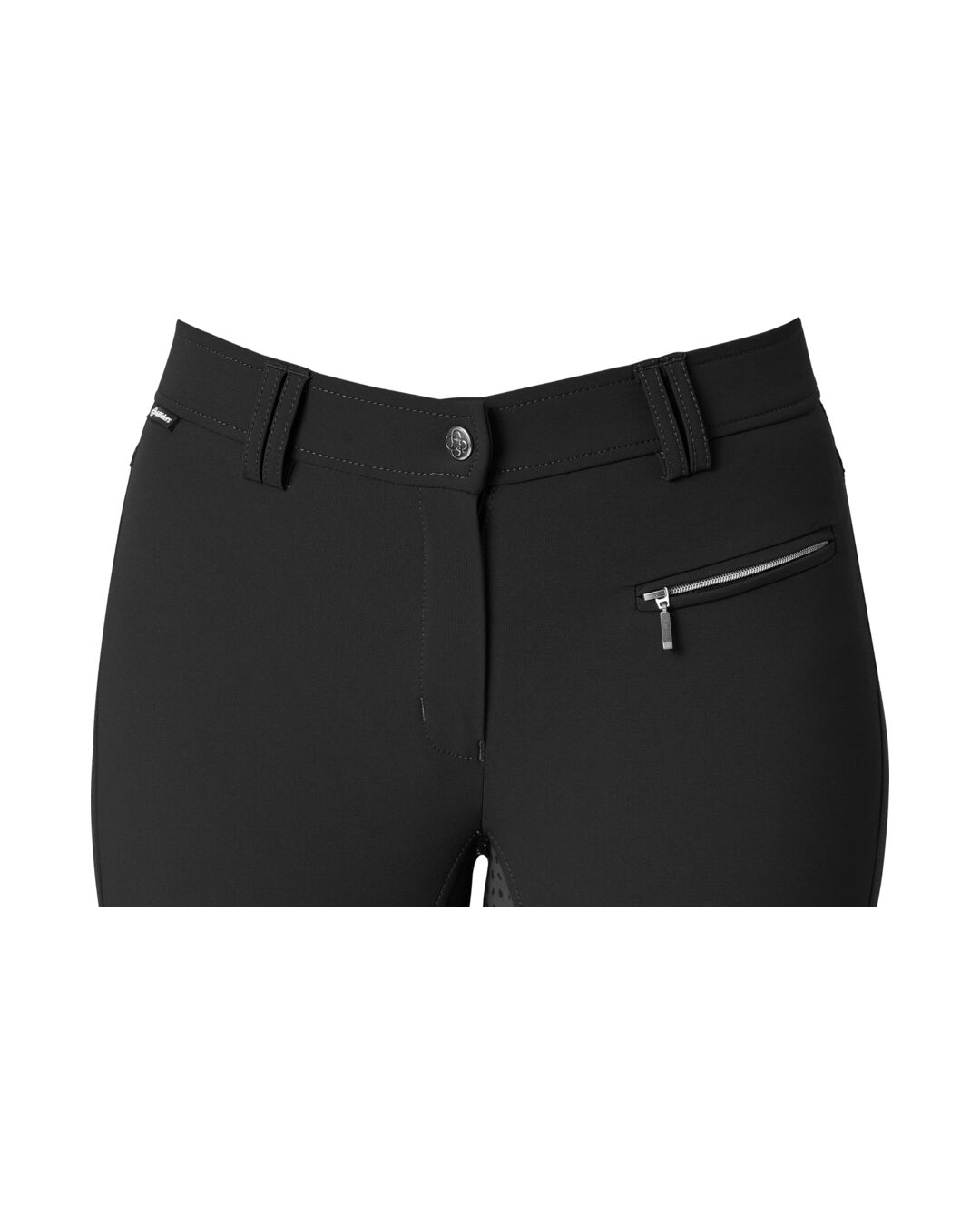 Der feminine Schnitt der Grip-Reithose zaubert eine schöne Silhouette und besticht durch optimale Passform und angenehmen Tragekomfort. Weitere praktische Details der Reithose sind die einseitige Einschubtasche mit Reißverschluss und die komfortablen, elastischen Beinabschlüsse. Eine dezente Logo-Stickerei rundet das schicke Design ab.