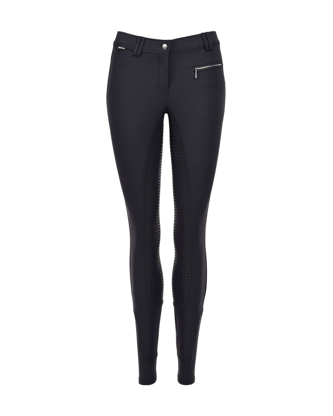 Die Lara 3 Kristall Full Grip Reithose von 4Riders vereint Eleganz und Funktionalität in einem Produkt, das speziell für modebewusste Reiterinnen entworfen wurde.