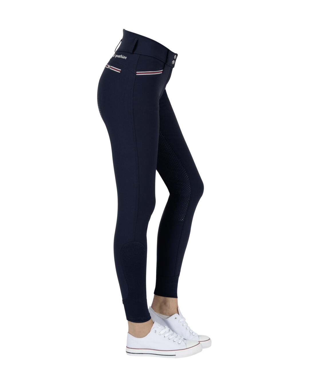 Diese Vollbesatzgrip-Reithose kommt mit einem neuen und bequemen Hochbund und bietet dir damit noch mehr Komfort. Das leichte und hochelastische Material der Reithose sorgt für eine schmeichelnde Passform, während der praktische Grip-Besatz dir einen festen Halt im Sattel garantiert. Optisch überzeugt die Damen-Reithose mit modischen Details, wie die kontrastfarbenen Enden an den Hosentaschen. Ein schöner Rücken kann auch entzücken: Der Hochbund ist am Rücken elegant geformt und hält dein Oberteil, wenn du es hineinsteckst, gut in der Hose.