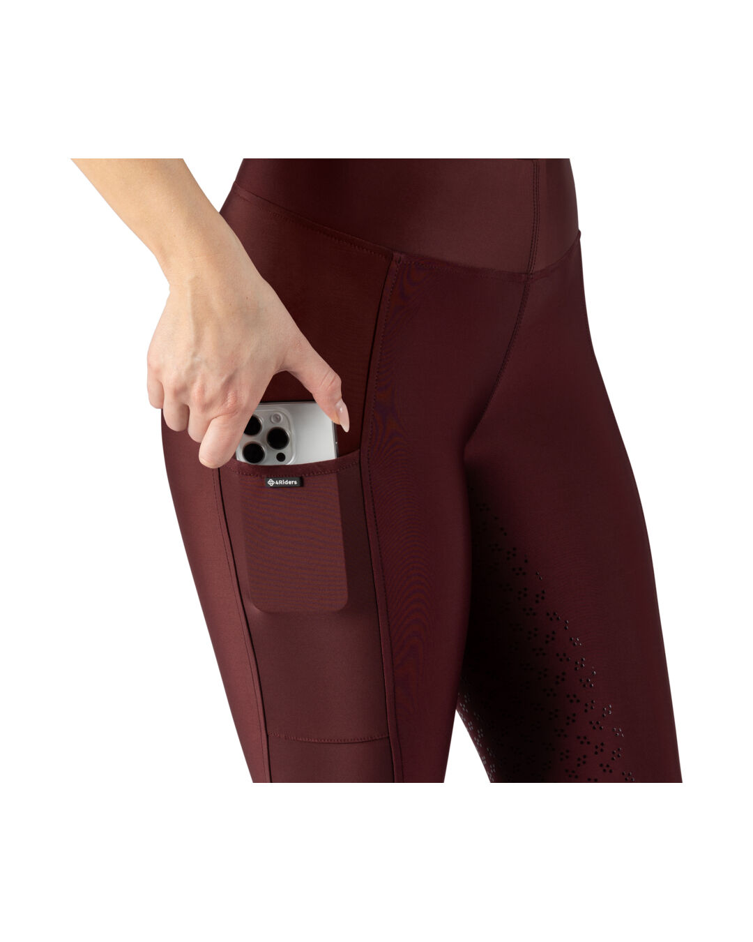 Diese Reitleggings besticht durch ihren glänzenden Stoff, der in gedeckten oder knalligen Farben erhältlich ist und der nicht nur modisch aussieht, sondern auch die Bewegungsfreiheit und den Komfort während des Reitens maximiert. Der hohe Bund sorgt für eine perfekte Passform, während die praktische seitliche Tasche dafür designed wurde, dein Smartphone sicher aufzubewahren, sodass du es immer griffbereit hast!