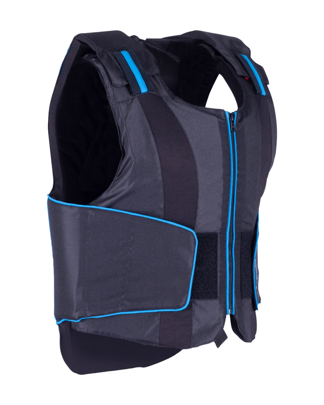 Die Sicherheitsweste ist aus einem langlebigen und robusten Material gefertigt, das für einen effektiven Schutz bei Stürzen oder Stößen sorgt und die Belastungen beim Reiten reduziert. Dank der praktischen Klettverschlüsse an den Seiten- und Schulterpartien lässt sie sich leicht anpassen, an- und ausziehen, was den Komfort und die Handhabung im täglichen Gebrauch verbessert. Dabei ist sie so gestaltet, dass sie stufenlos verstellbar ist, was eine genaue Passform ermöglicht und gleichzeitig den Tragekomfort maximiert.