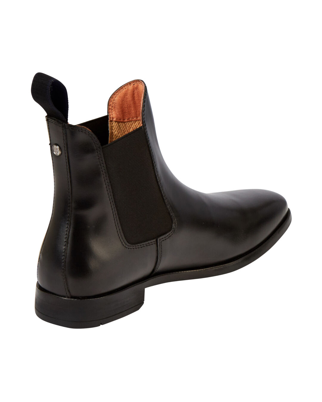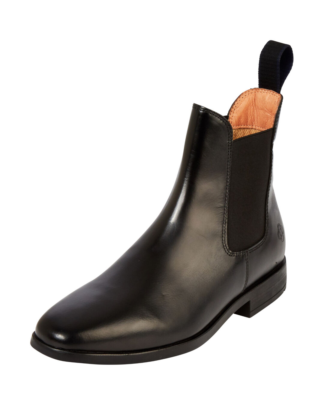 Gefertigt aus hochwertigem Leder, besticht dieser Schuh durch seine Langlebigkeit und sein elegantes Erscheinungsbild, das sich nahtlos in die Reitausrüstung integriert. Ein markantes Feature dieser Stiefelette ist der seitliche Elastikeinsatz, der eine ausgezeichnete Passform und Bewegungsfreiheit ermöglicht. Dieser Einsatz passt sich flexibel an die Bewegungen des Fußes an und erleichtert gleichzeitig das An- und Ausziehen des Schuhs - ein wesentlicher Vorteil für Reiter, die Wert auf praktische Handhabung und Komfort legen. Der Schnitt der Stiefelette wurde mit Blick auf Sportlichkeit und Bequemlichkeit entworfen, um den spezifischen Anforderungen des Reitsports gerecht zu werden. Ergänzt wird das durchdachte Design durch eine Schlaufe an der Hacke, die das Einsteigen in die Stiefelette erheblich erleichtert.