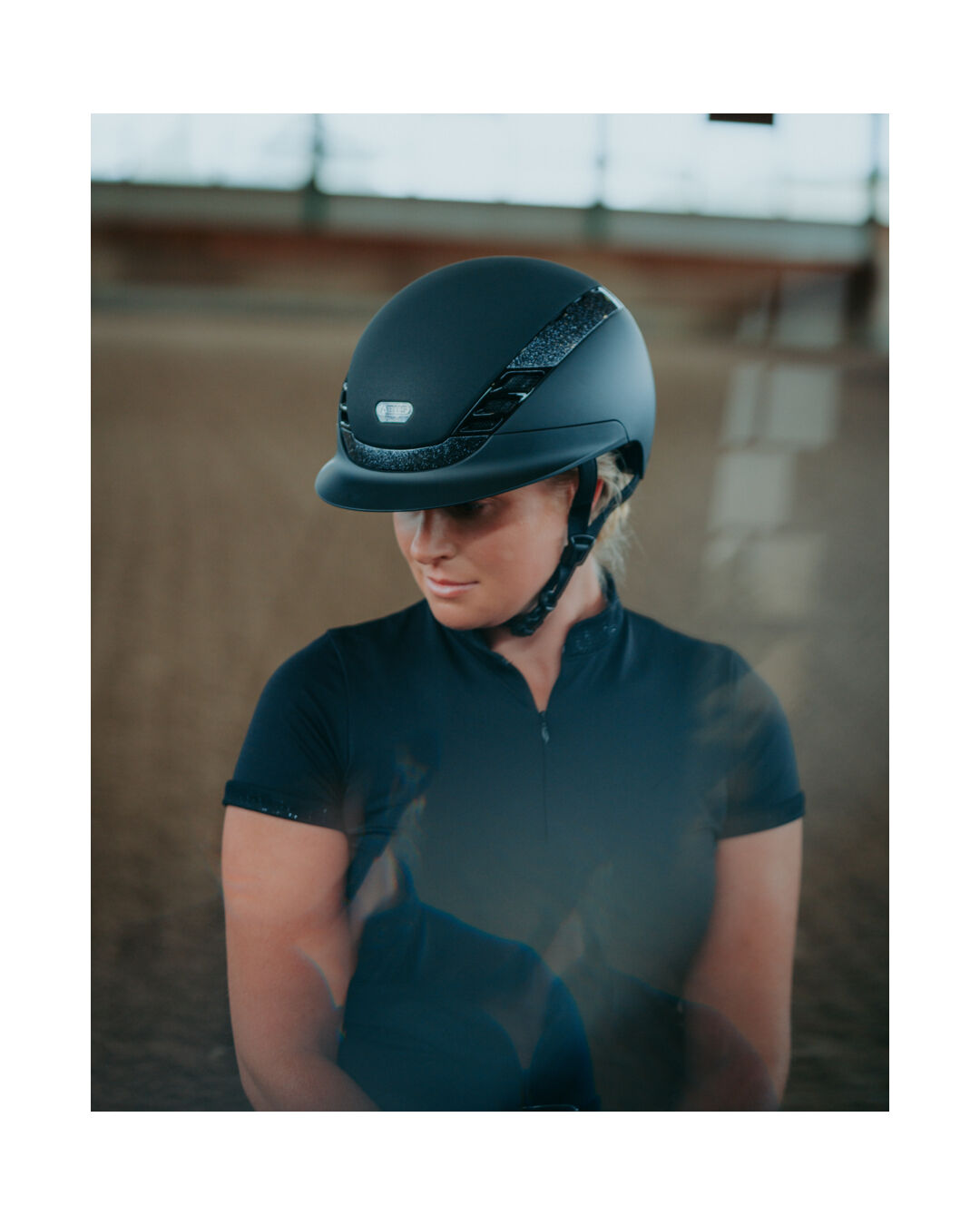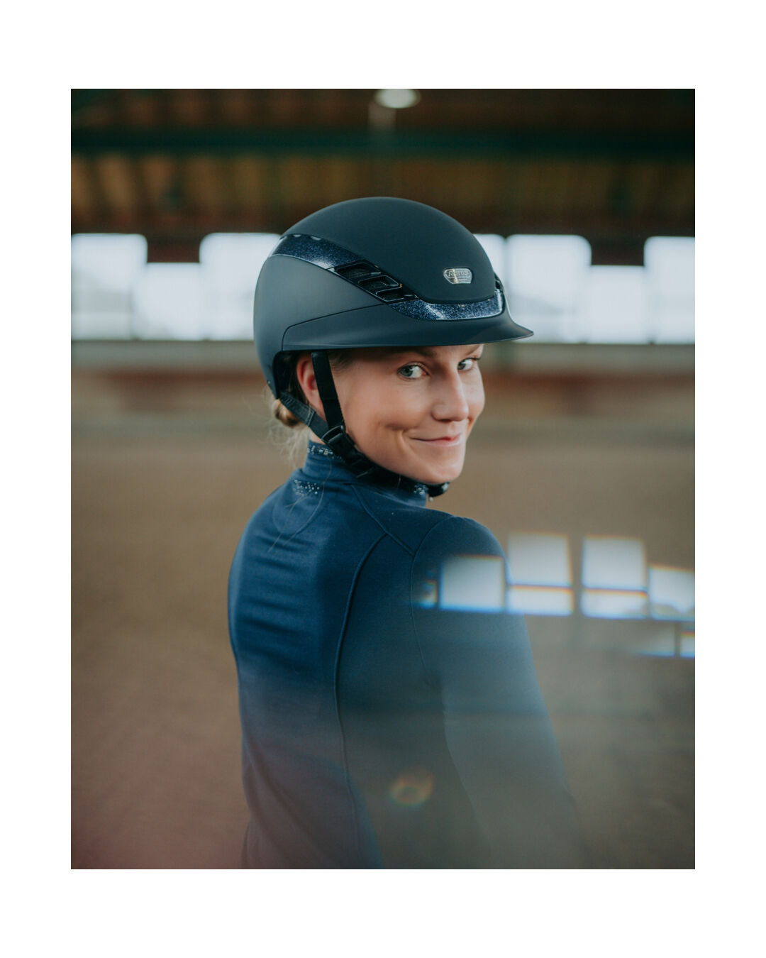 Der AirLuxe Supreme ist nicht nur funktional, sondern auch ein echter Hingucker: Hochwertige Materialien und Glitzerelemente verleihen ihm eine edle Optik. Die Höhenverstellbarkeit und die Ponytail-Öffnung sorgen für zusätzlichen Komfort, egal ob du im Alltag oder bei Turnieren unterwegs bist.