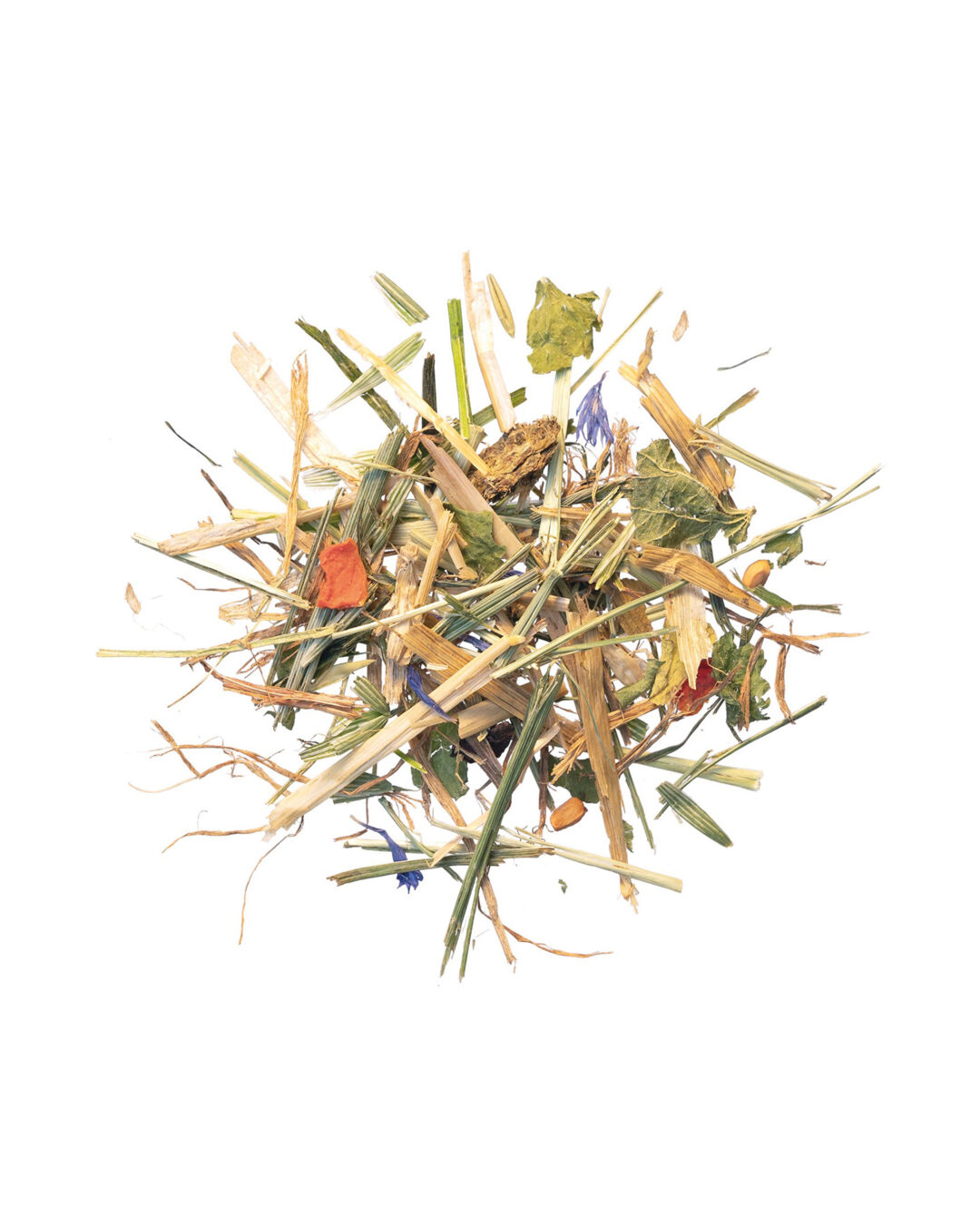 Energiearme Wiesengräser und -kräuter, Grünhafer sowie hochwertiges Stroh bilden die rohfaserreiche Basis für den LeichtGenuss. Der hohe Strukturanteil verlängert die Fressdauer, hält das Pferd beschäftigt und sorgt zudem für mehr Kauaktivität. So wird die Speichelproduktion angeregt, was sich positiv auf die Gesundheit des Magens auswirkt. Der hohe Gehalt an Fasern begünstigt somit die gesamten Verdauungsvorgänge. Die Kombination aus Ginkgo und Brennnessel liefert natürliche Vitalstoffe, denen durchblutungsfördernde sowie entzündungshemmende Eigenschaften nachgesagt werden. Verfeinert mit einer kleinen Menge Wurzelgemüse, wird die Mischung besonders schmackhaft.