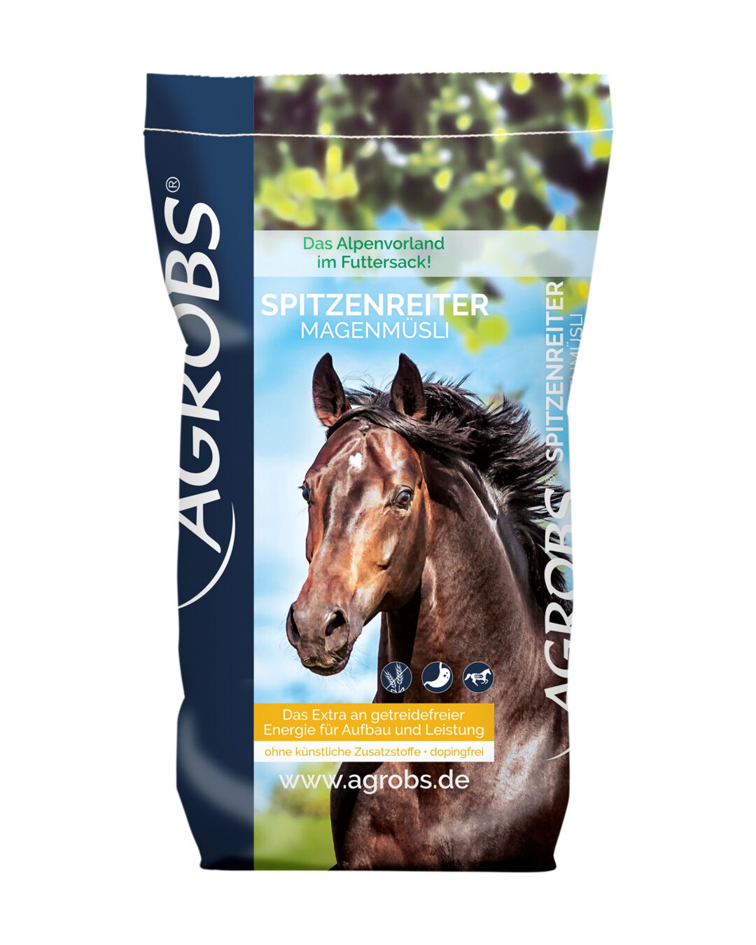 Das Spitzenreiter Magenmüsli von Agrobs liefert hochkonzentrierte Energie auf Fett-Faser-Basis – perfekt für Pferde mit erhöhtem Energiebedarf und sensibler Verdauung.