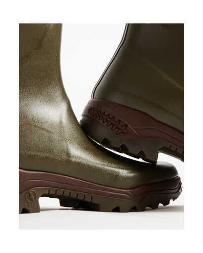 Das schnelltrocknende Futter hält deine Füße auch bei längeren Einsätzen angenehm trocken. Die selbstreinigende Profilsohle verhindert, dass sich Schmutz oder kleine Steine festsetzen, während das Naturkautschuk-Obermaterial absolute Wasserdichtigkeit garantiert.