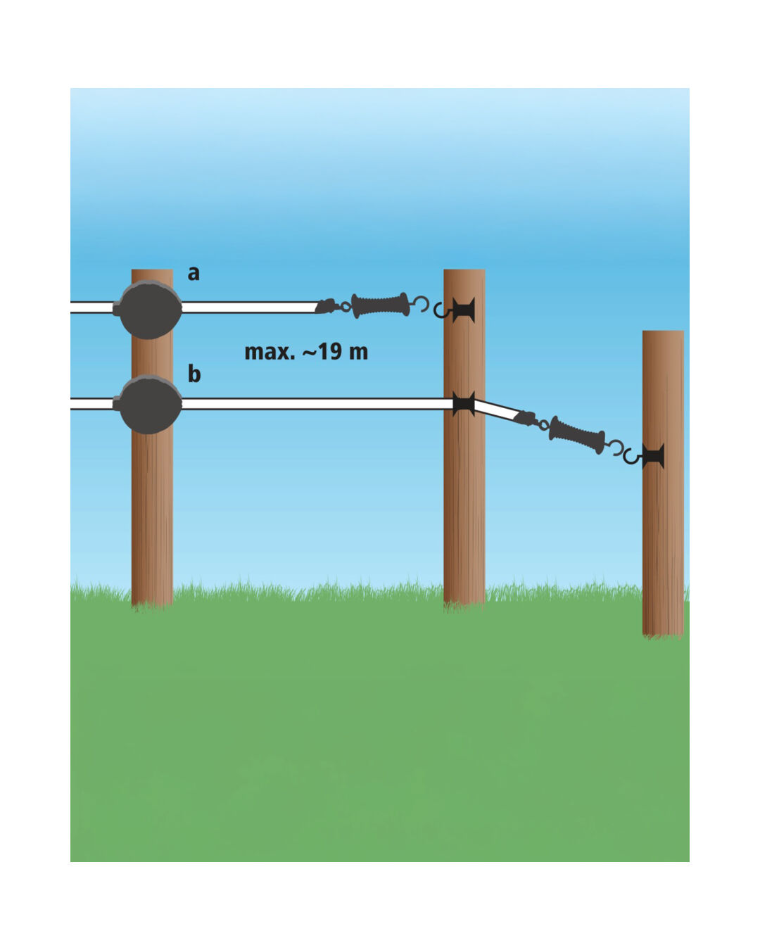 Das System überzeugt mit durchdachtem Design und hochwertiger Verarbeitung: Neun starke Edelstahlleiter im 20 mm breiten Band sorgen für eine optimale Stromabgabe und maximale Hütesicherheit. Dank der robusten Monofilfäden bietet das Band eine hohe Bruchlast und hält auch bei häufiger Nutzung zuverlässig stand.