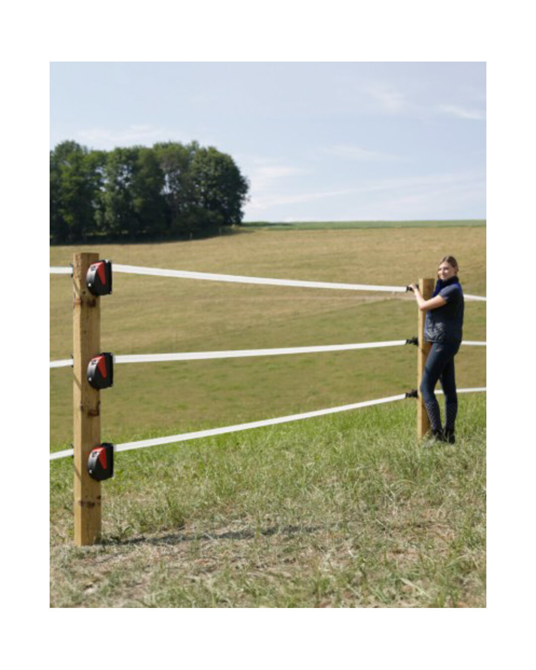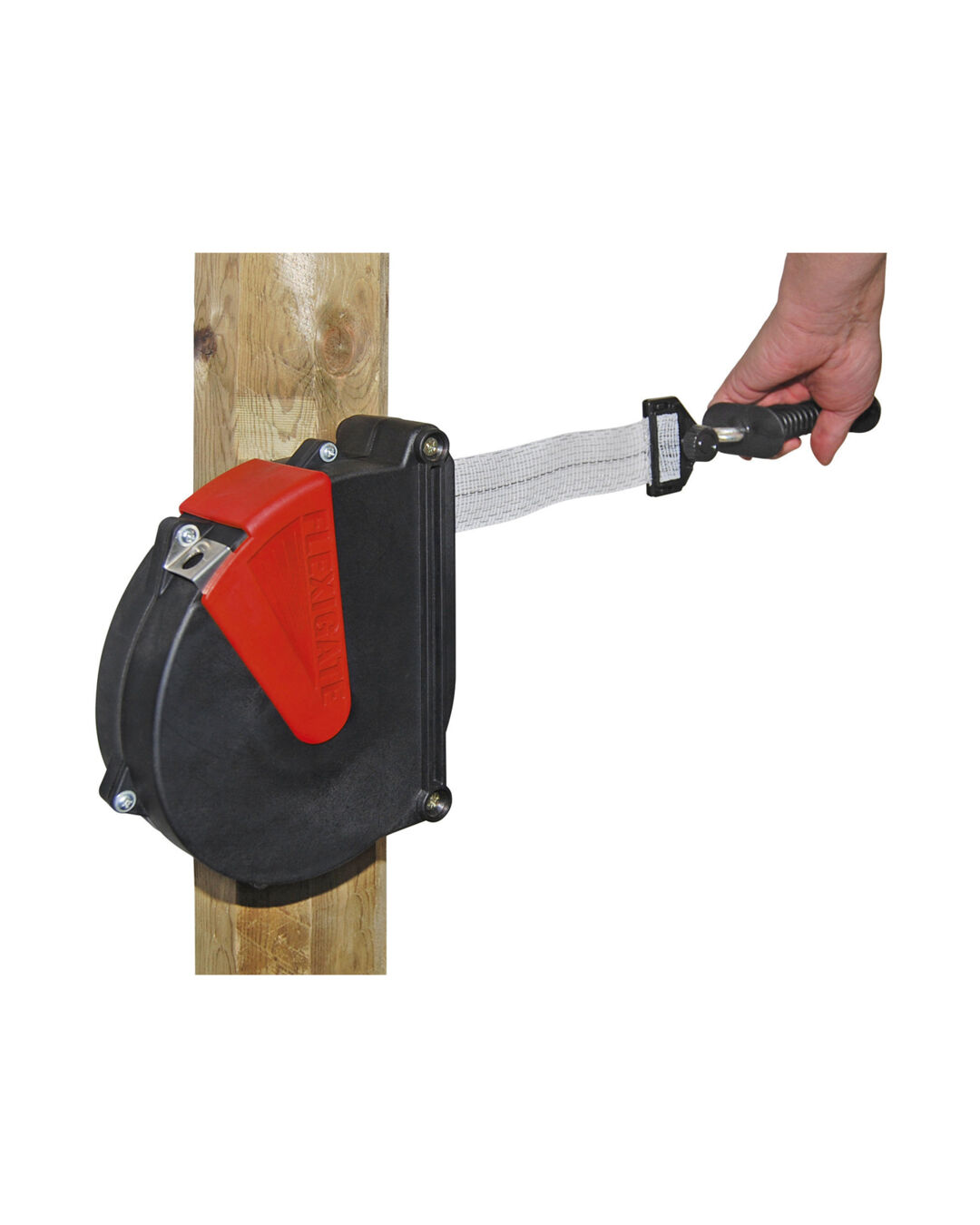 Dank der Befestigung mit zwei beiliegenden Holzschrauben direkt am Holzpfahl, ist die Installation von FlexiGate ein Kinderspiel. Das System eliminiert gängige Probleme wie durchhängende Bänder oder Seile, Schleifenbildung, die zur Stolperfalle für Mensch und Tier werden kann, das Einklemmen von Mähnen- oder Schweifhaaren sowie das Verdrecken des Leitermaterials.