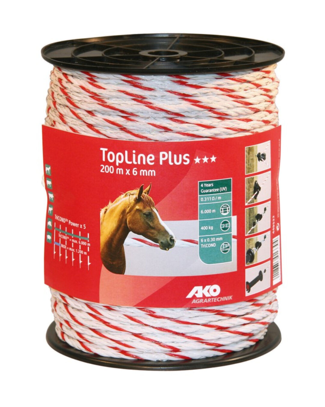 Die AKO Bänder stehen für überlegene Leitfähigkeit und Langlebigkeit. Ein besonderes Merkmal dieser Bänder ist die Verwendung des innovativen Leitermaterials TriCOND, das eine fünffach höhere Leitfähigkeit im Vergleich zu herkömmlichen nicht rostenden Drähten gleicher Stärke bietet. Das bedeutet, dass mit TriCOND längere Zäune betrieben werden können und eine fünffach effektivere Stromübertragung zum Ort der Tierberührung gewährleistet wird, was für eine erhöhte Sicherheit sorgt.
