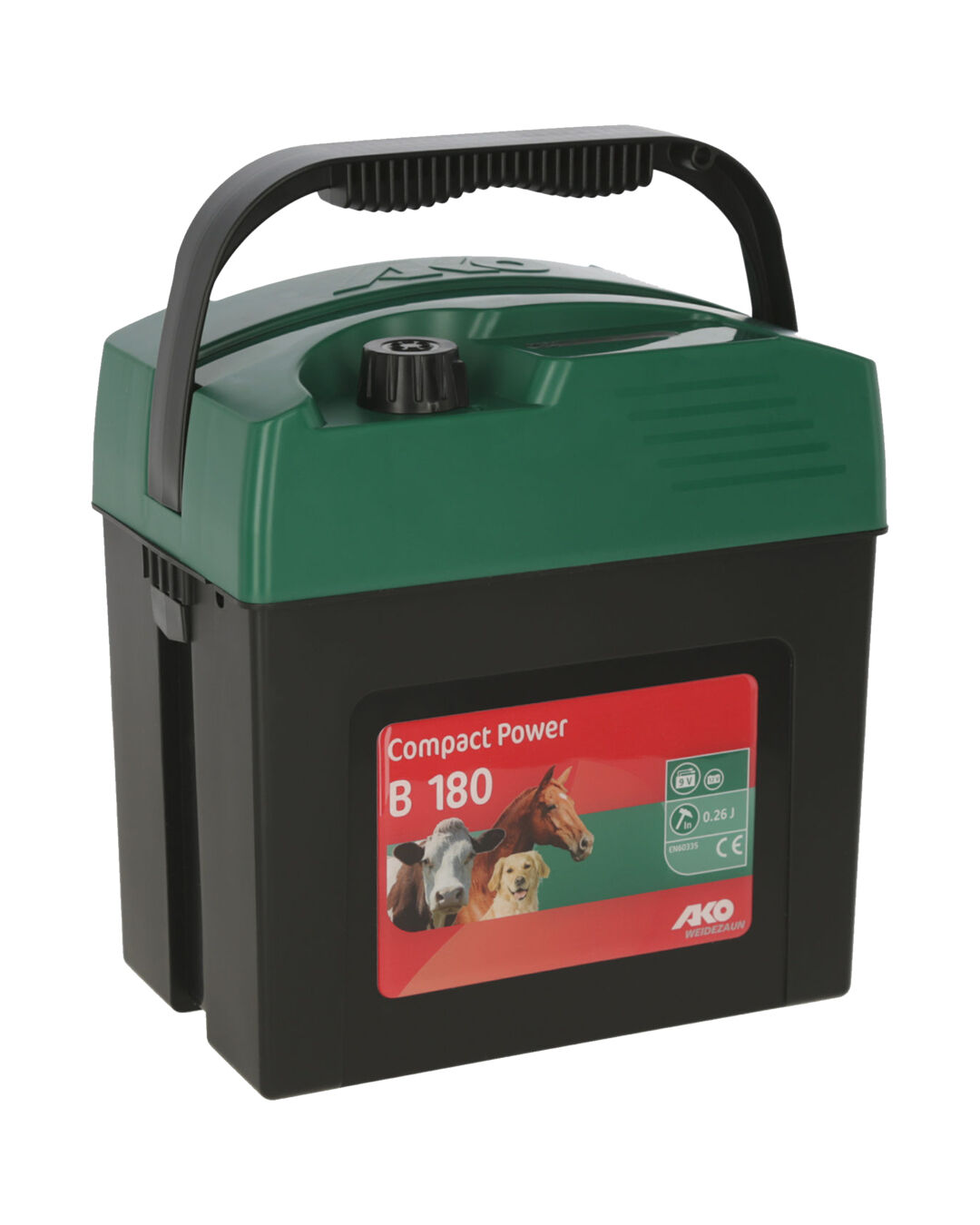 Das Compact Power B180 von AKO ist ein äußerst effizientes Weidezaungerät für den mobilen Einsatz, das sich hervorragend für kleinere Pferde- und Rinderweiden eignet und auch sicher für Kleintiere wie Hunde und Katzen verwendet werden kann.