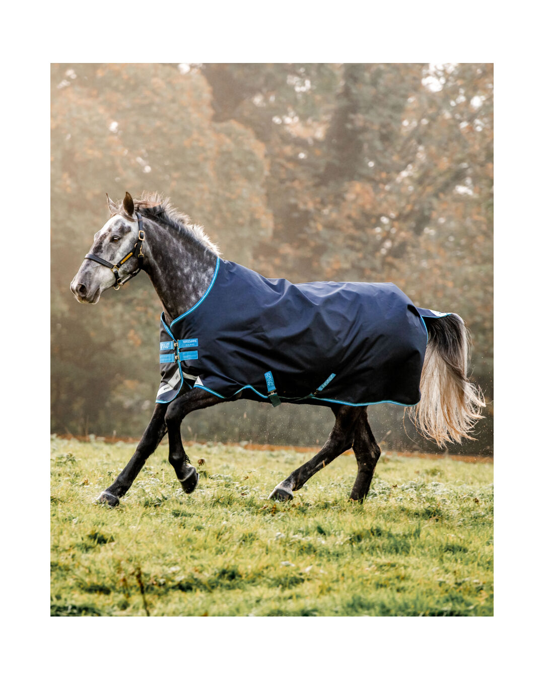 Sie besteht aus robustem 1200 Denier Polyester mit einer 50 g Faserfüllung, die dein Pferd schützt und warmhält. Die wasserdichte und hoch atmungsaktive 1200-Denier-Weidedecke ist mit einem glanzgebenden Innenfutter versehen, das für gesundes und glänzendes Fell sorgt.