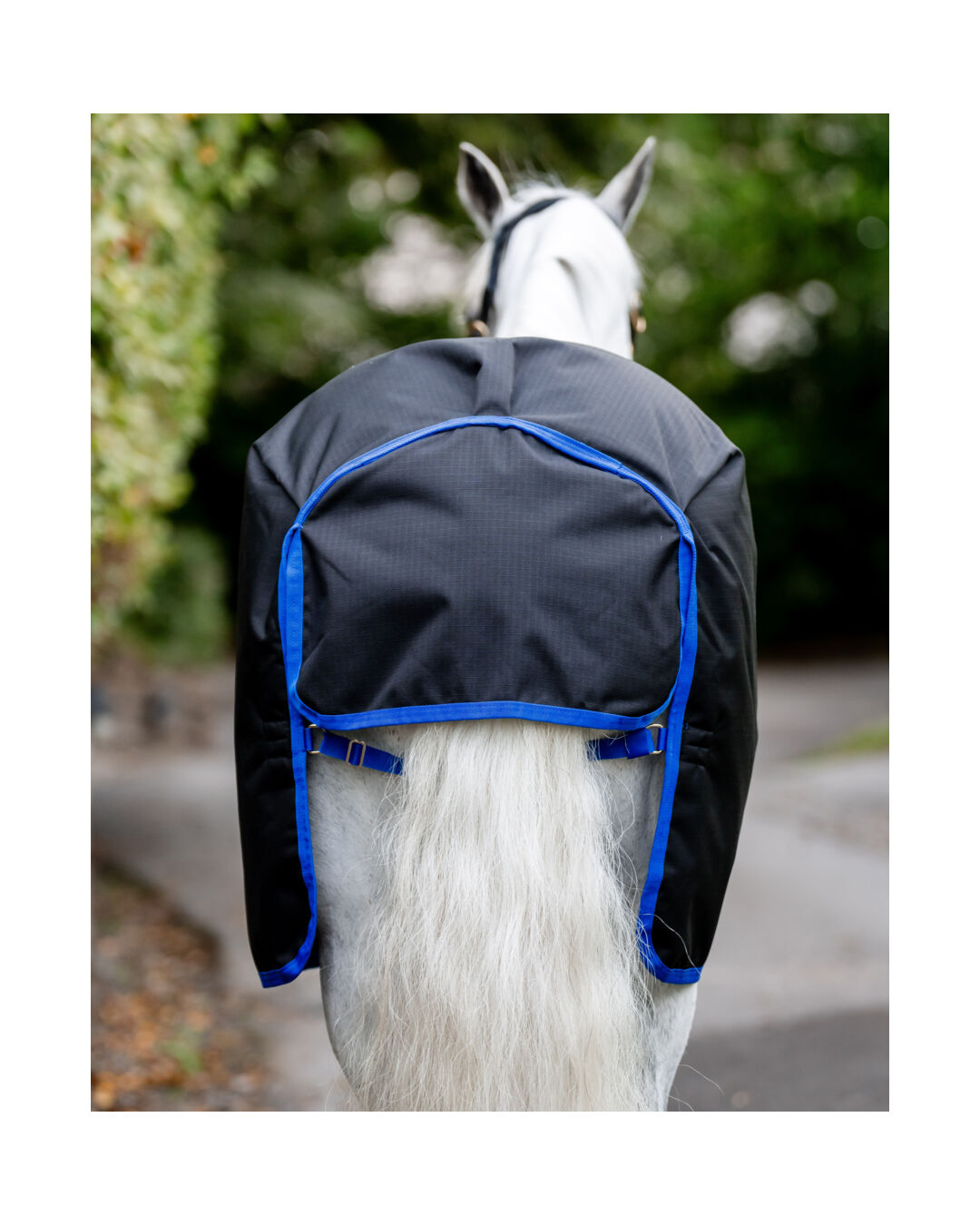 Durch die Halsteilösen und Unterdecken-Laschen ist die Decke mit dem Amigo Ripstop 900D Halsteil und dem Horseware Unterdecken-System kompatibel, sodass du sie flexibel an verschiedene Witterungen anpassen kannst.
