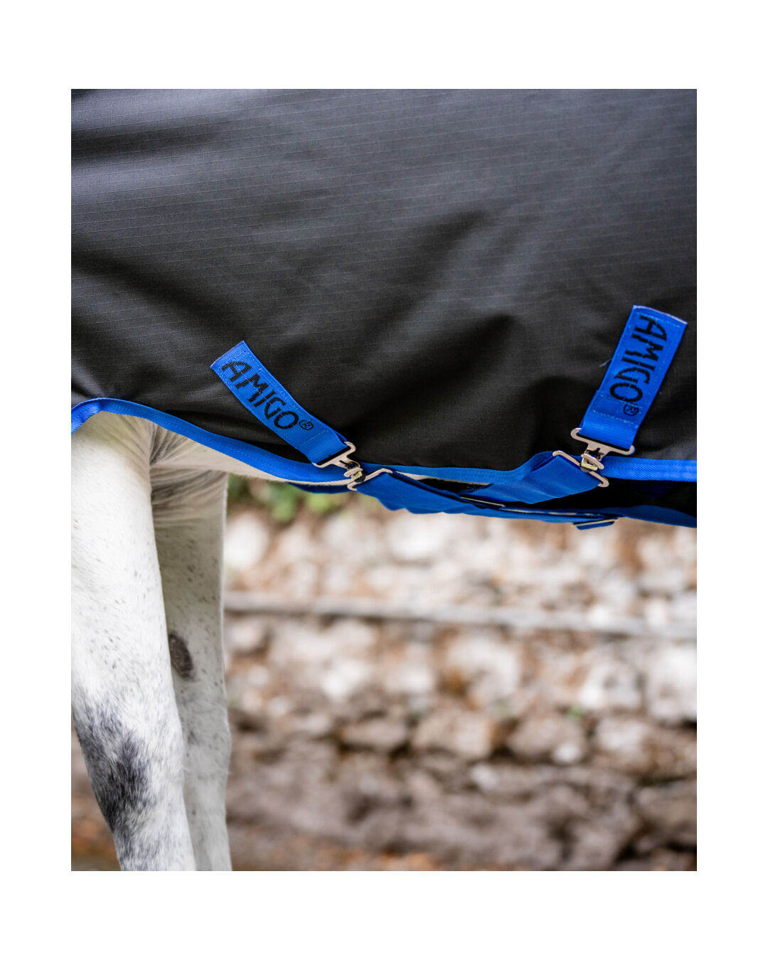Durch die Halsteilösen und Unterdecken-Laschen ist die Decke mit dem Amigo Ripstop 900D Halsteil und dem Horseware Unterdecken-System kompatibel, sodass du sie flexibel an verschiedene Witterungen anpassen kannst.